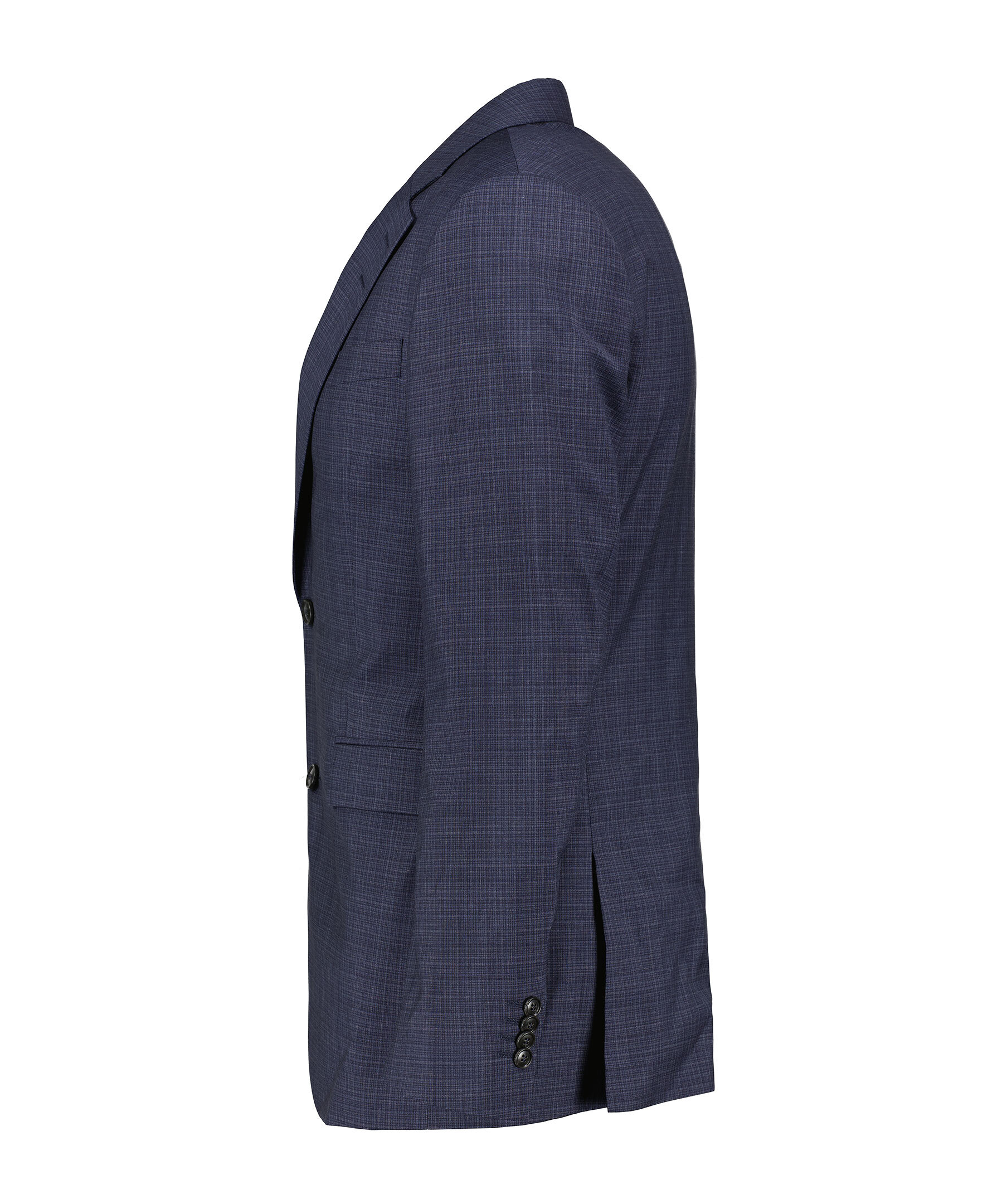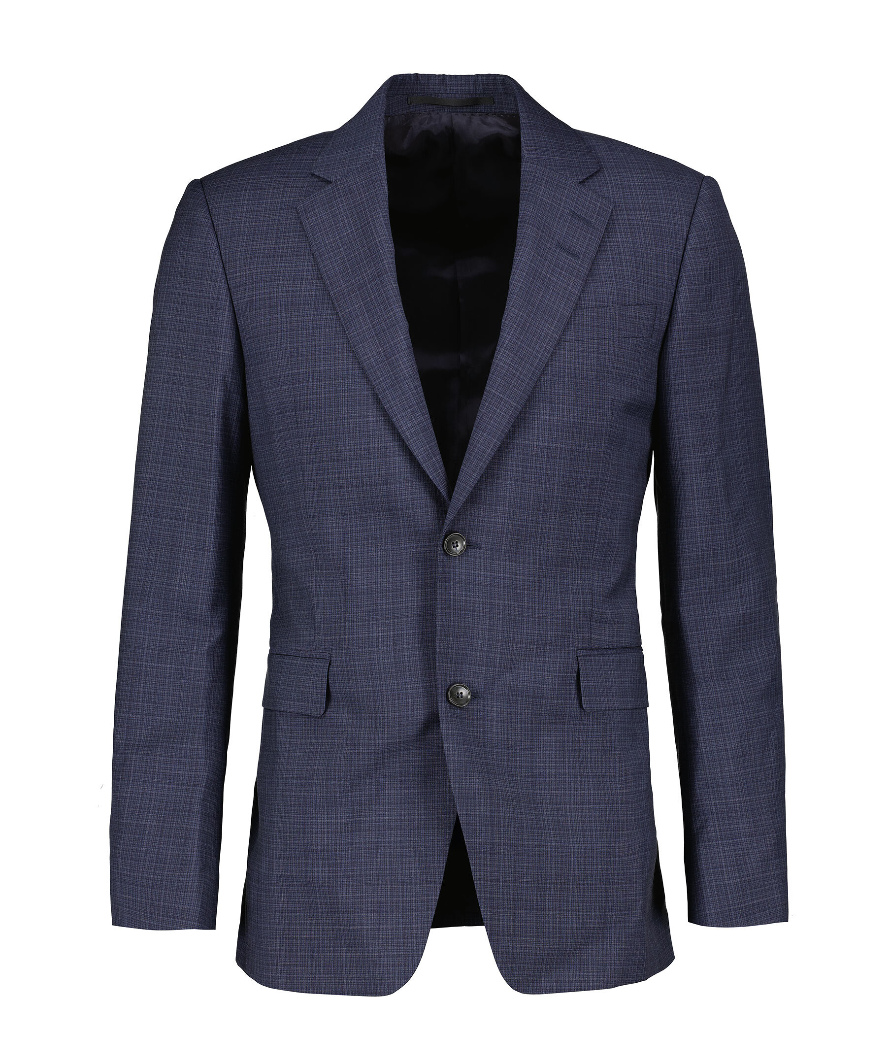 Mörkblå kavaj från Tiger of Sweden. Kavajen har ett subtilt rutigt mönster och stängs med två knappar framtill. Den har två fickor med lock, två innerfickor, en bröstficka samt dubbelt sprund baktill. Tillverkad i ull med foder i viskos.