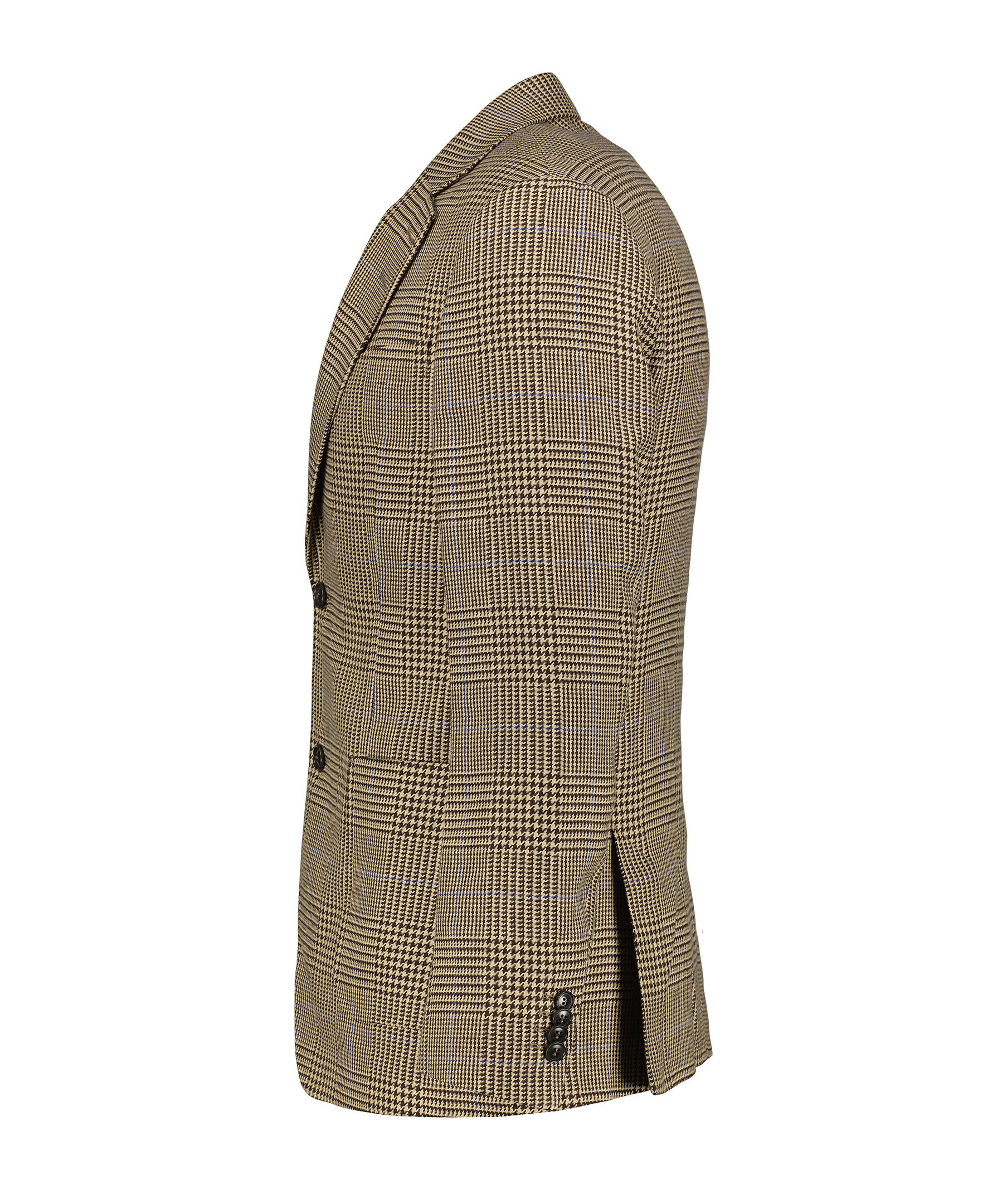 Brun och beige rutig kavaj från Tiger of Sweden. Kavajen stängs med två knappar framtill och har två fickor, en bröstficka, två innerfickor samt dubbelt sprund baktill. Tillverkad i en bomull- och linblandning med foder i viskos.