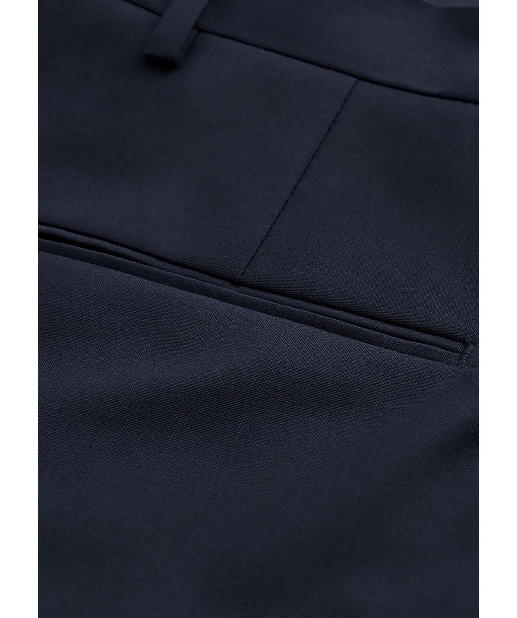 Mörkblåa kostymbyxor från Tiger of Sweden. Byxorna har en smal passform med smala ben, de är midjehöga och tillverkade av en polyester blandning.