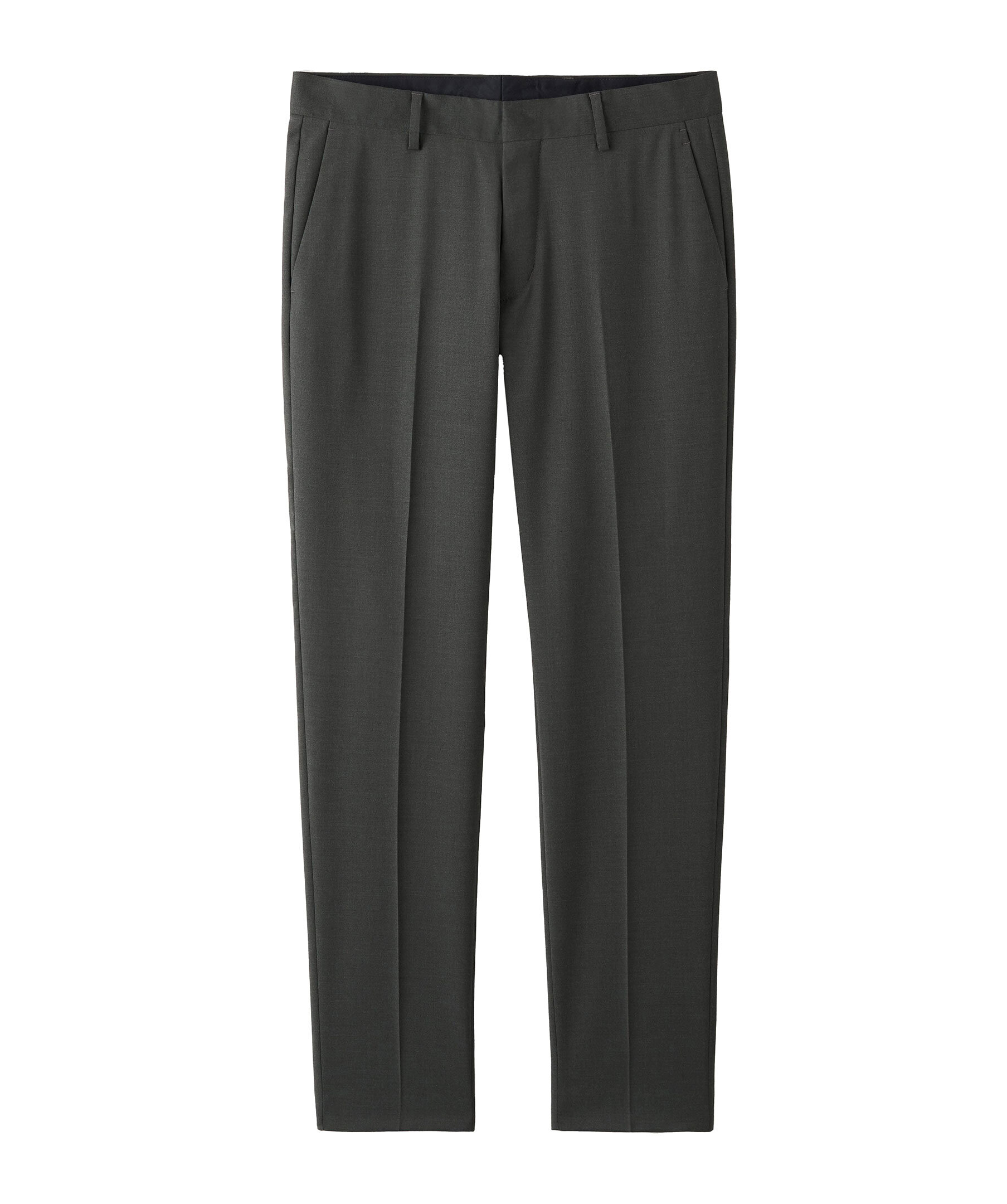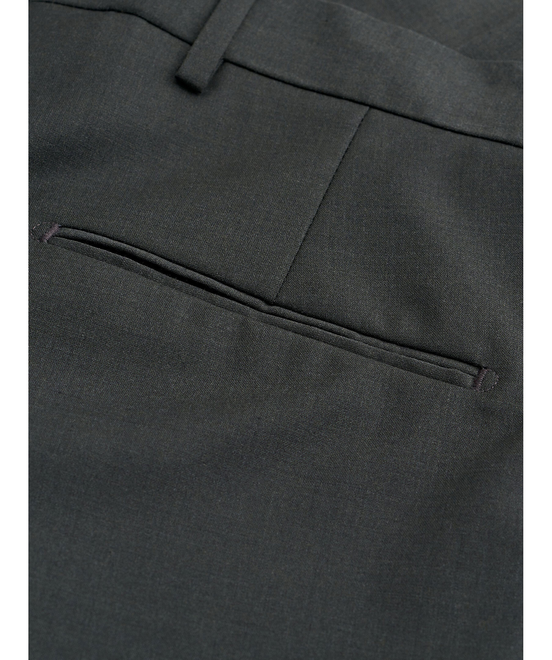 Skogsgrön kostymbyxor från Tiger of Sweden. Tillverkade i återvunnen slätvävd polyester- och ullblandning. Bälteshällor i midjan och två sidfickor. Smal passform och smala ben.