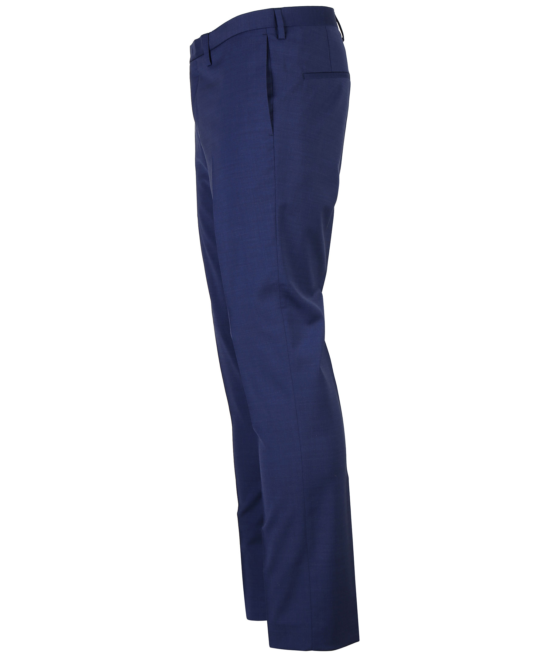 Blå dressad byxa från Tiger of Sweden i ullmix. Byxan har två framfickor fram samt två bakfickor med knappstängning. Gylfen stängs med dragkedja samt dold hake.
