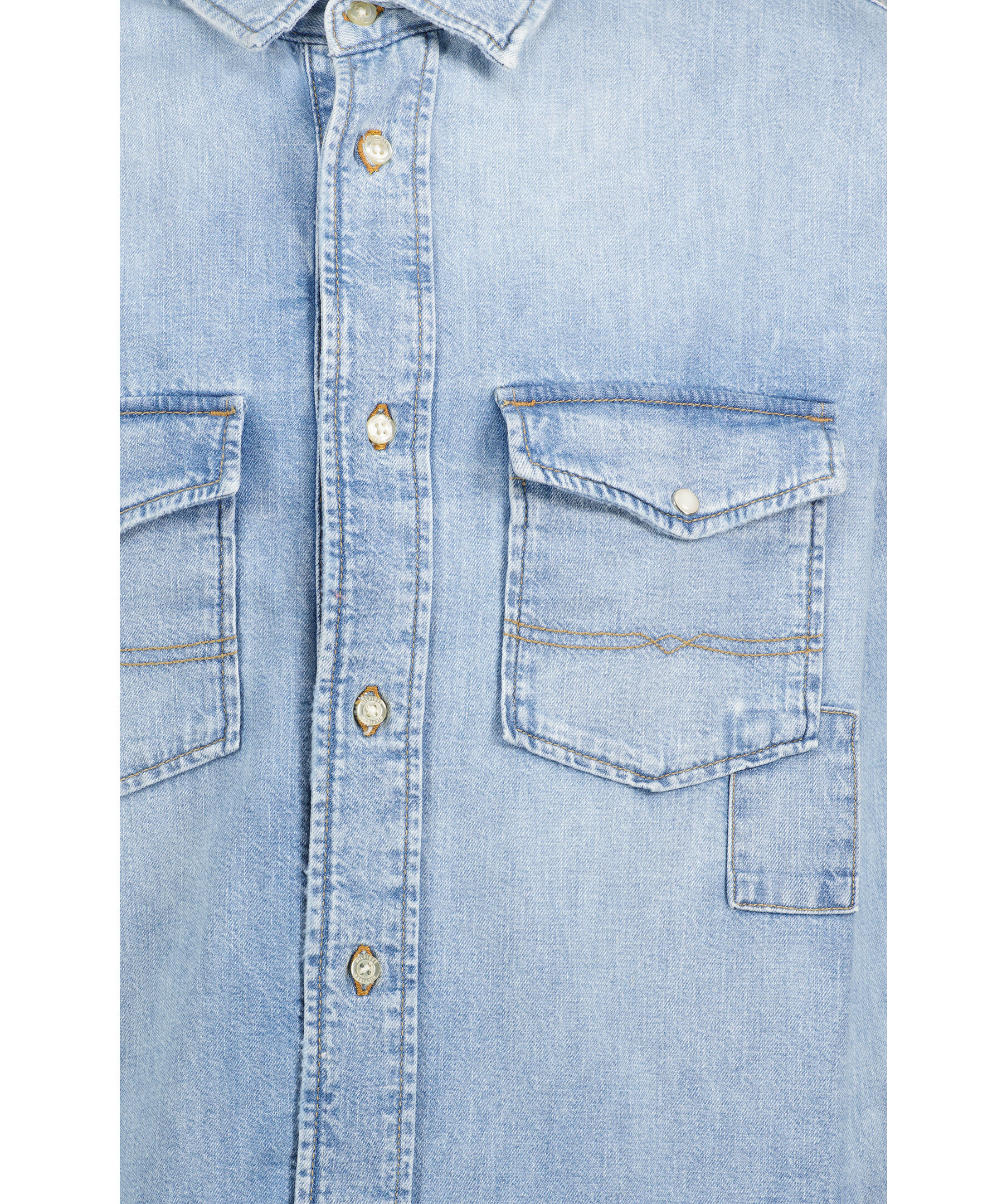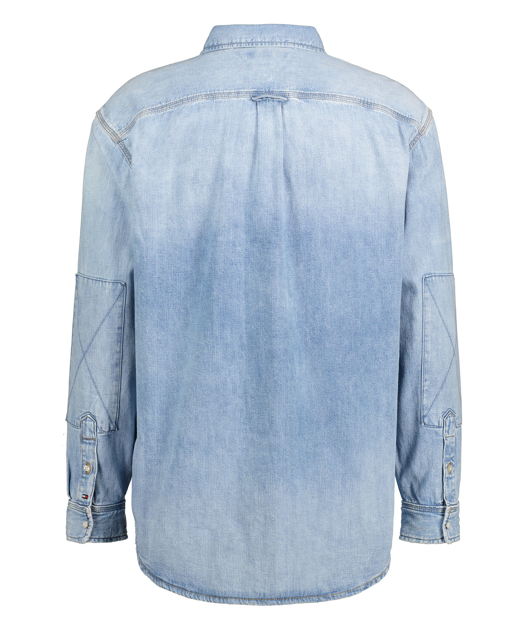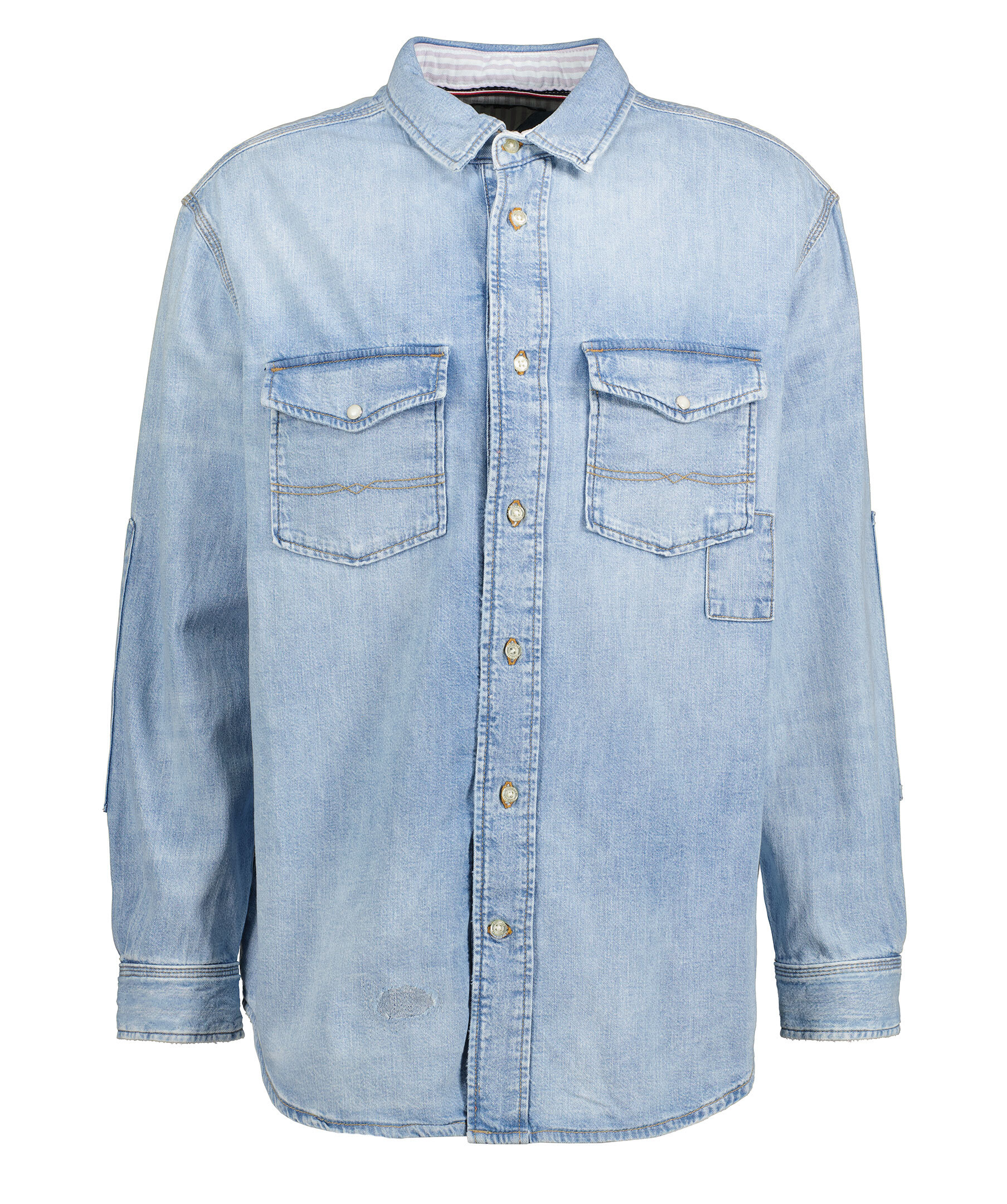 Ljusblå jeansskjorta från Tommy Hilfiger. Skjortan har button-down krage och armbågslappar. Två bröstfickor som stängs med pärlknappar. Rundade manschetter med tryckknappar i pärlor. Tommy Hilfiger flaggabroderi på mudd. Tillverkad i bomull. Normal passform.