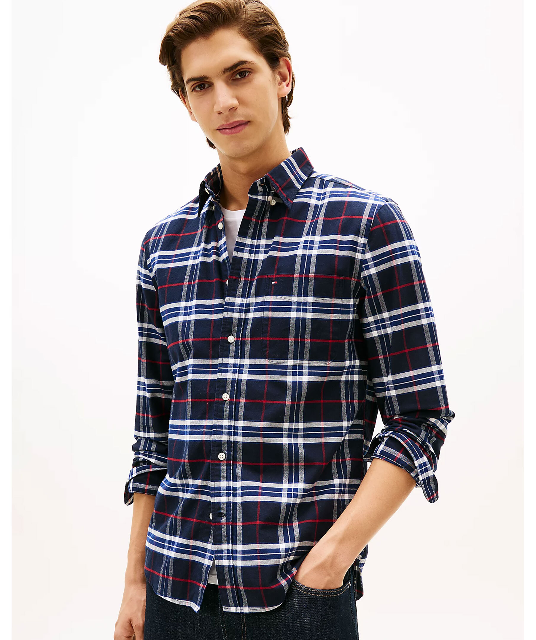 Rutig skjorta från Tommy Hilfiger med button down-krage. Broderad logga på bröstet. Bröstficka.