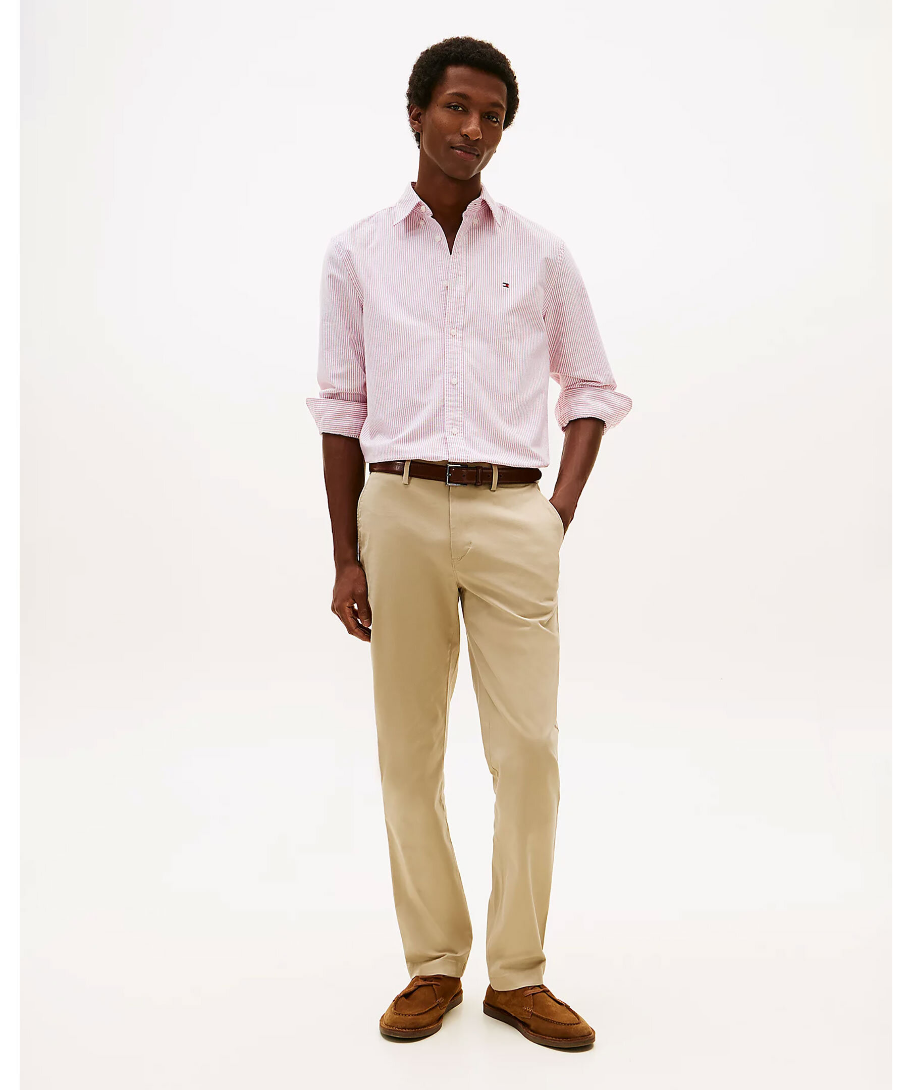 Beiga chinos från Tommy Hilfiger i modellen Denton med rak benform och klassisk passform. Den är tillverkad i högkvalitativ bomullsblandning med stretch för optimal komfort och hållbarhet. Byxorna har snedställda sidofickor, bakfickor med knapp och subtil flagglogga bak. Den mångsidiga designen gör att byxan passar lika bra till kontoret, en avslappnad middag ute eller helgens vardagsstil.