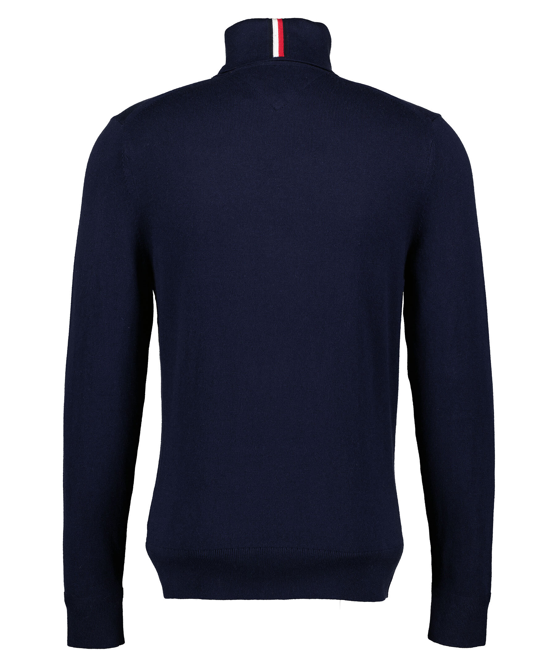 Marinblå polotröja från Tommy Hilfiger. Hög krage, ribbad muddar vid ärm och plagg slut. Broderad logotyp på bröstet. Tillverkad i en blandning av bomull och kashmir.