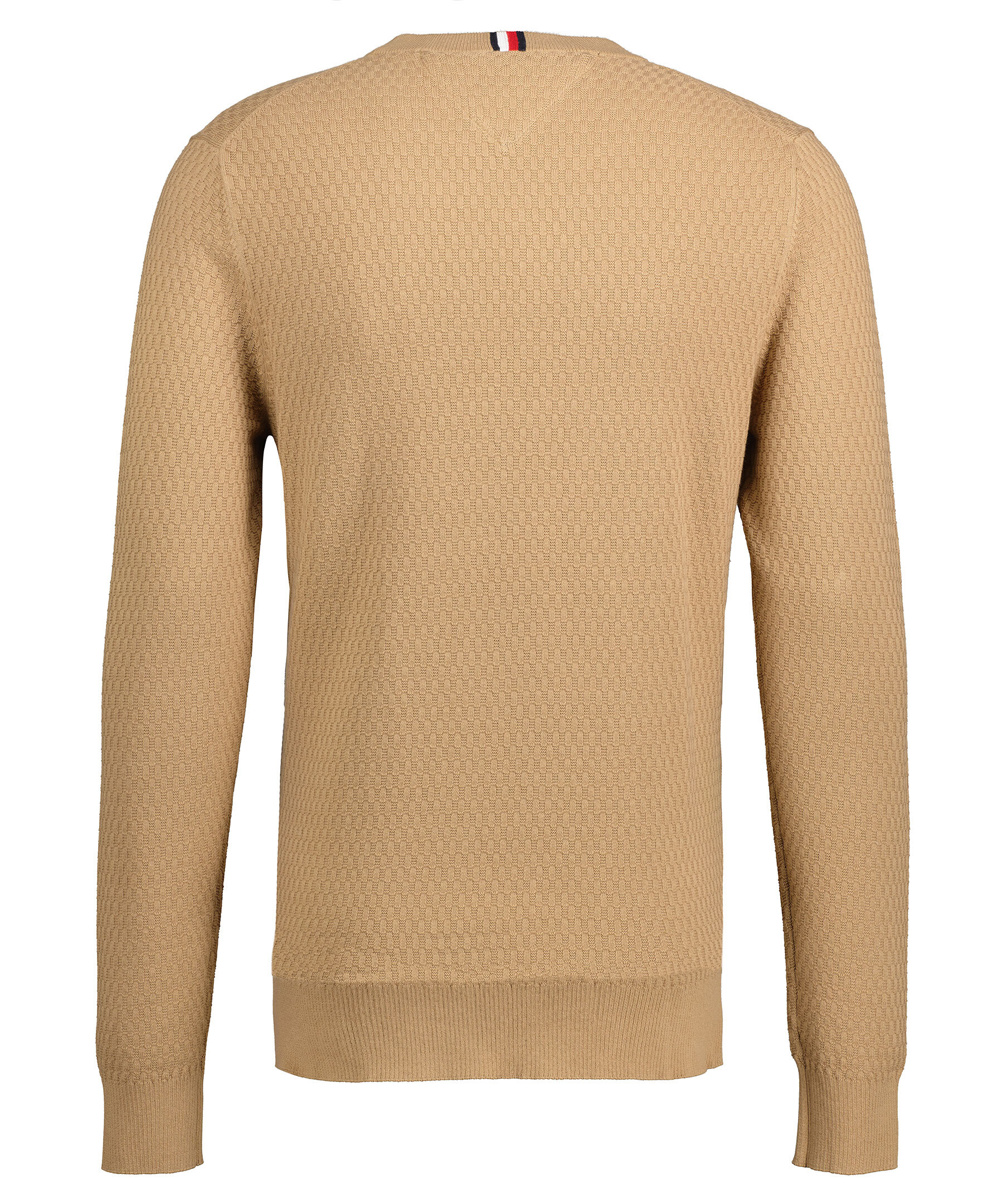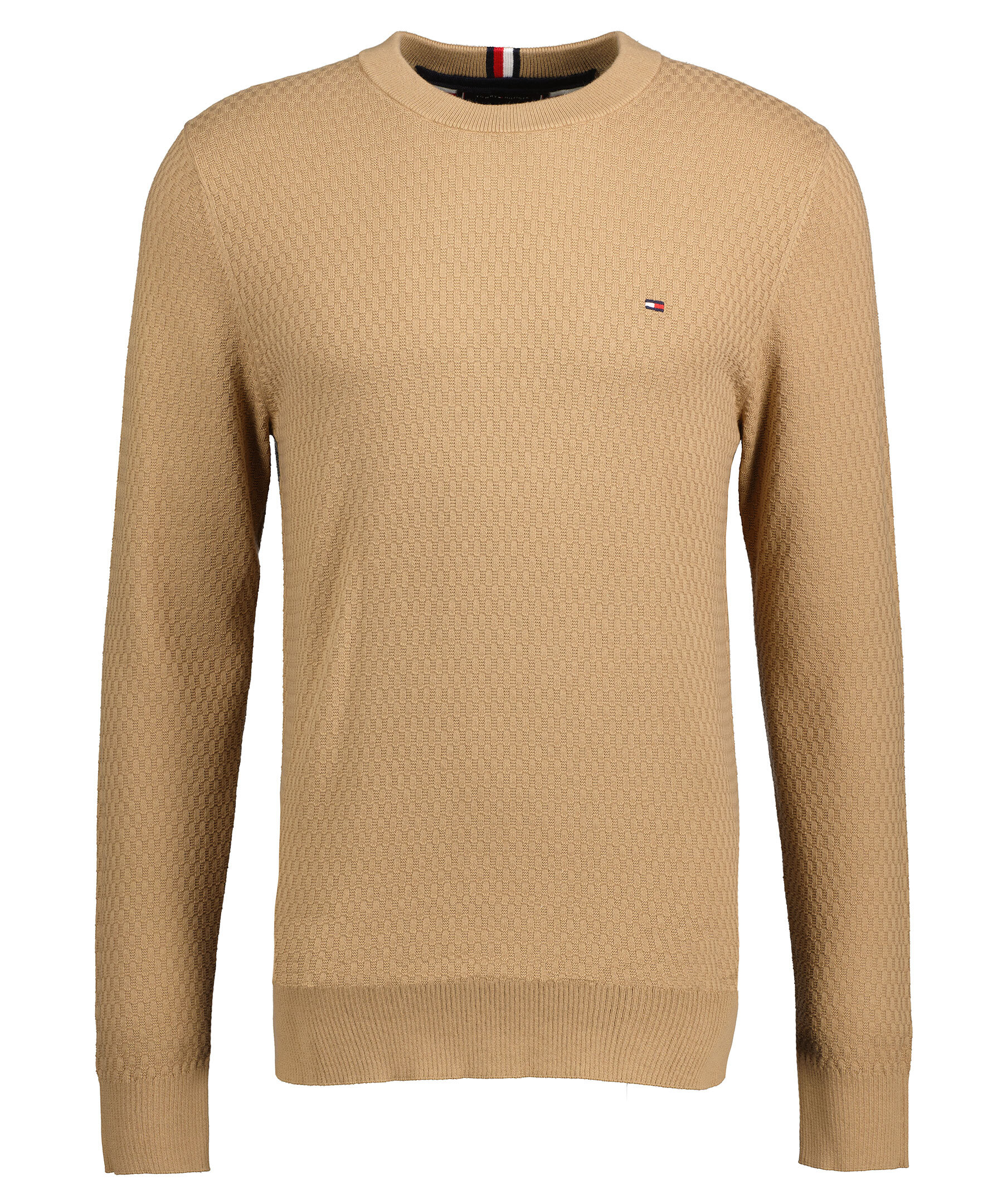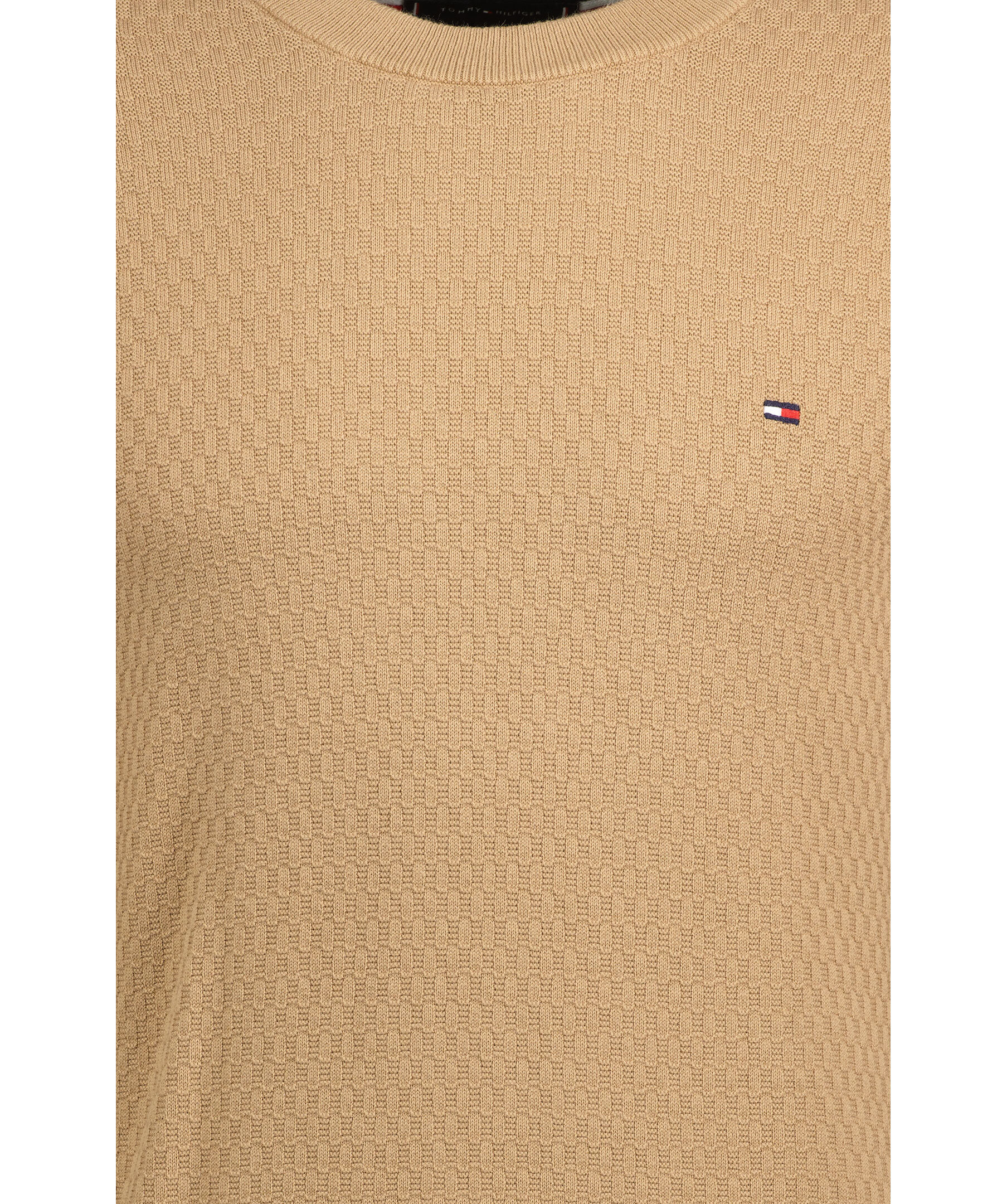 Beige strukturstickad tröja från Tommy Hilfiger. Rundad halsringning. Ribbstickade muddar vid ringning, ärm- och plaggslut. Broderad logotyp på vänster bröst. Tillverkad i 100% bomull.