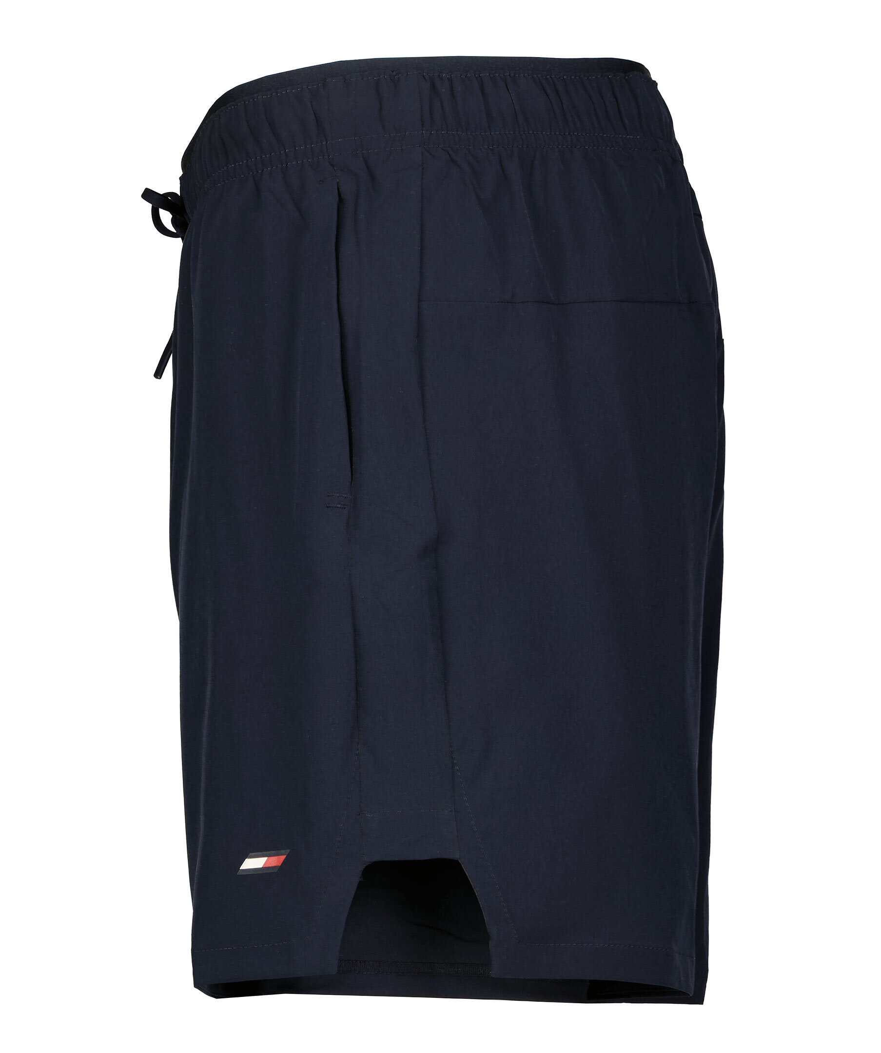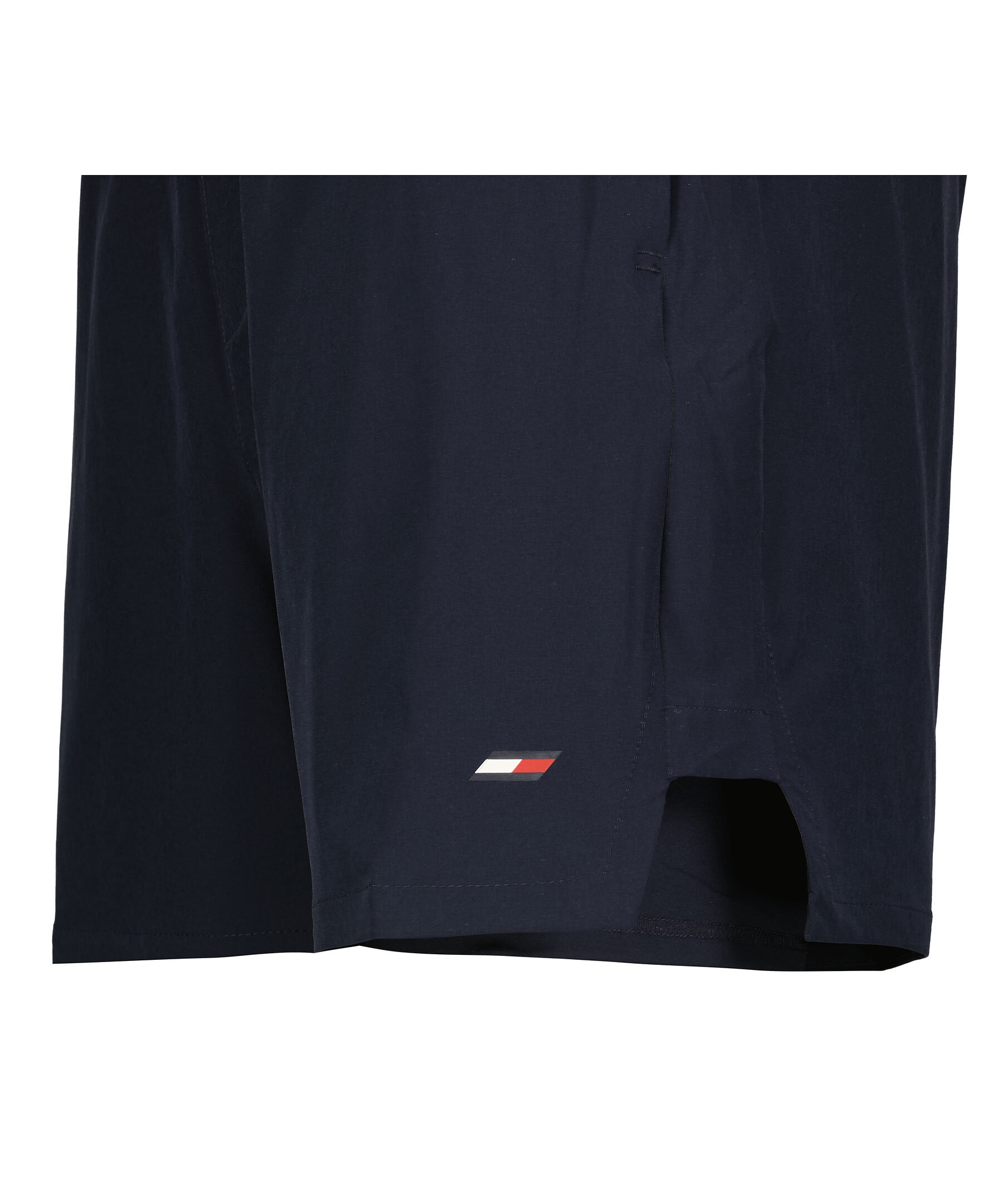 Marinblå träningsshorts från Tommy Hilfiger. Korta shorts med inbyggda korta tränings thigts. Två framfickor, elastisk midja med dragsko. Gummerad Tommy-flagga och slits vid benslut. Liten ficka med dragkedja på baksidan.