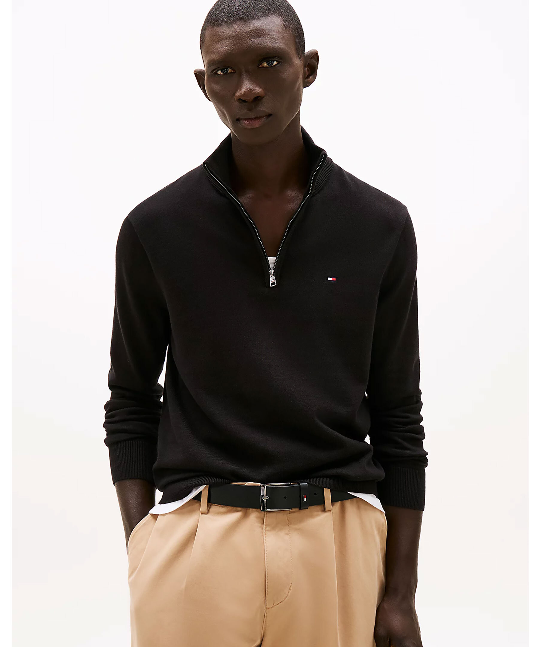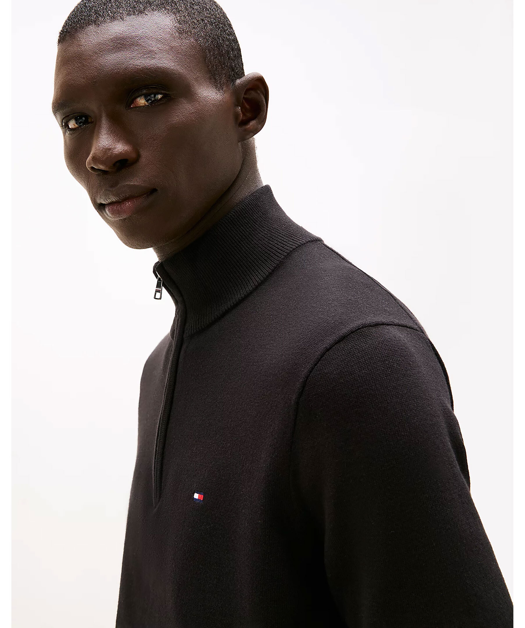 Tommy Hilfiger Essential Cotton Zip Mock - Svart