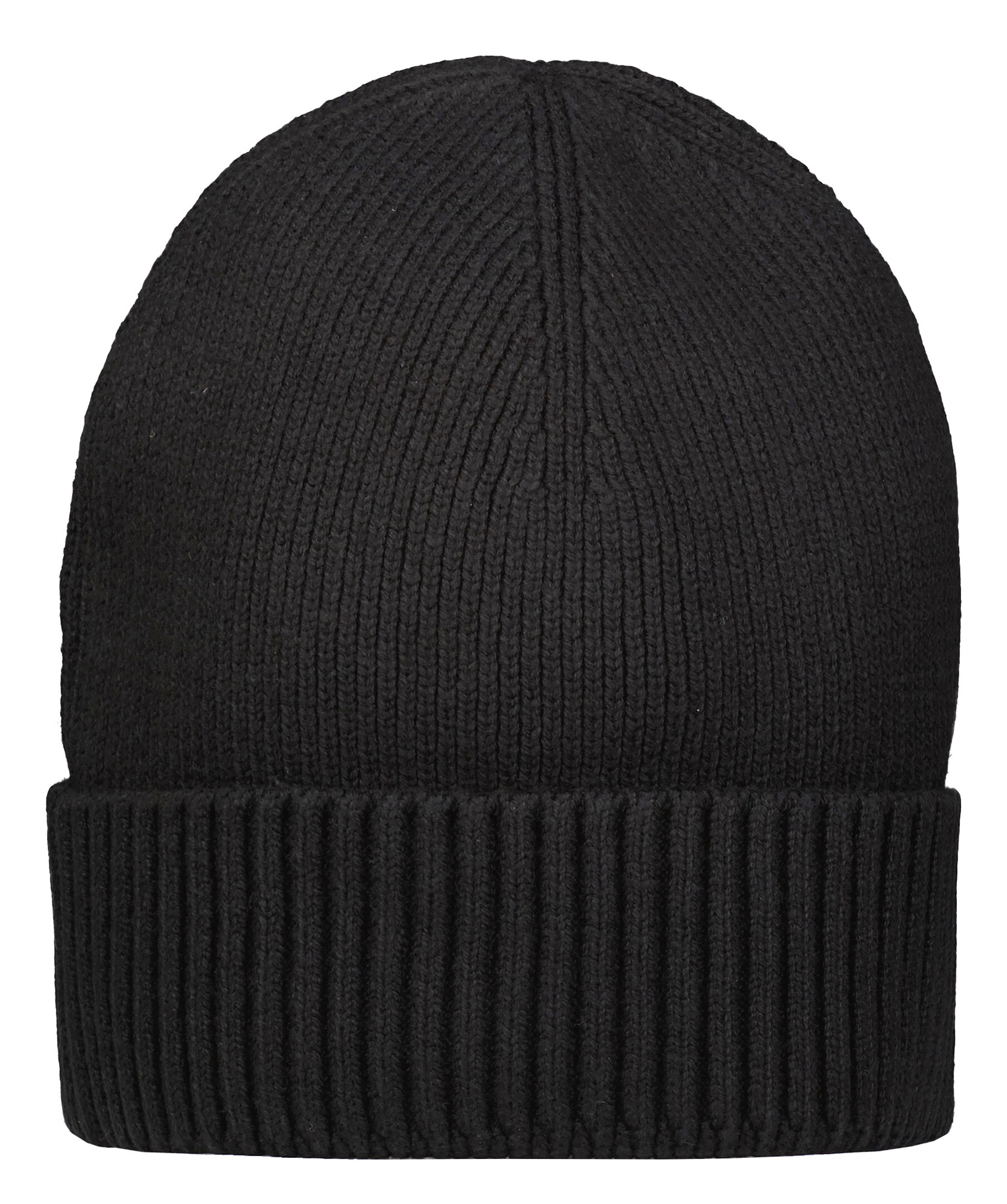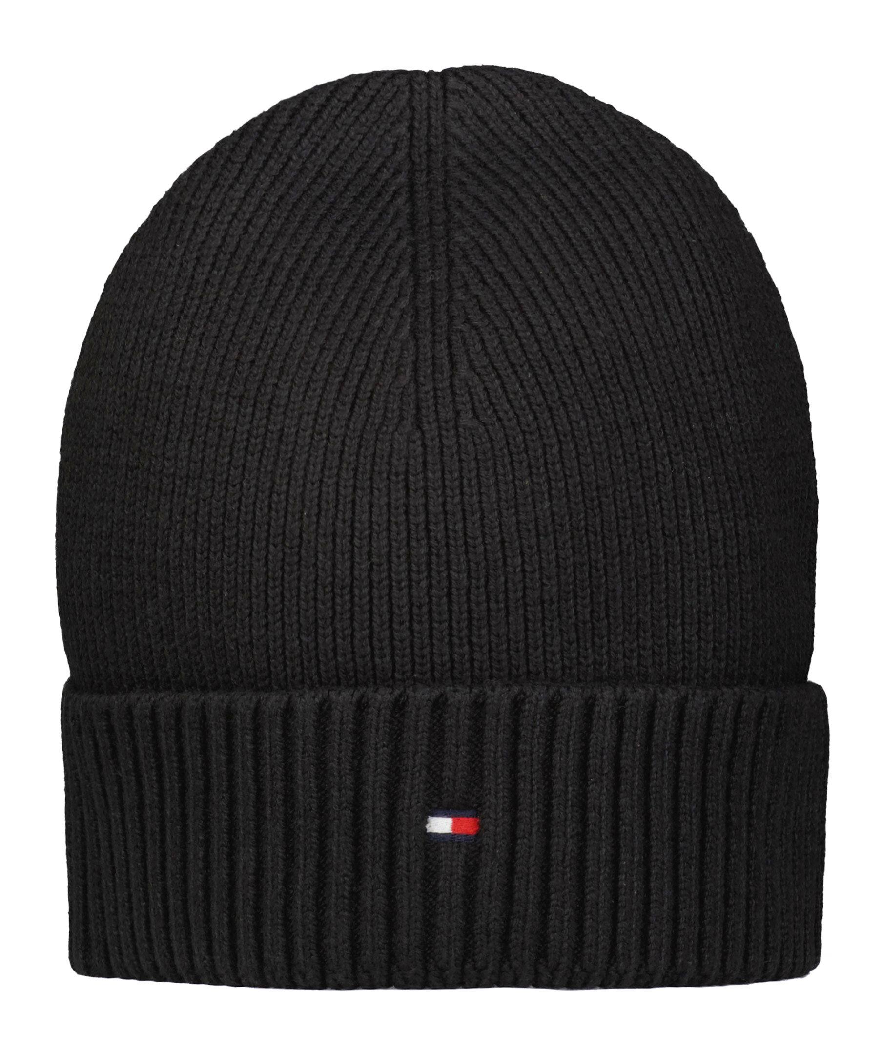 Svart mössa från Tommy Hilfiger. Uppvikt kant med broderad logga. Tillverkad i bomull- och kashmirblandning.