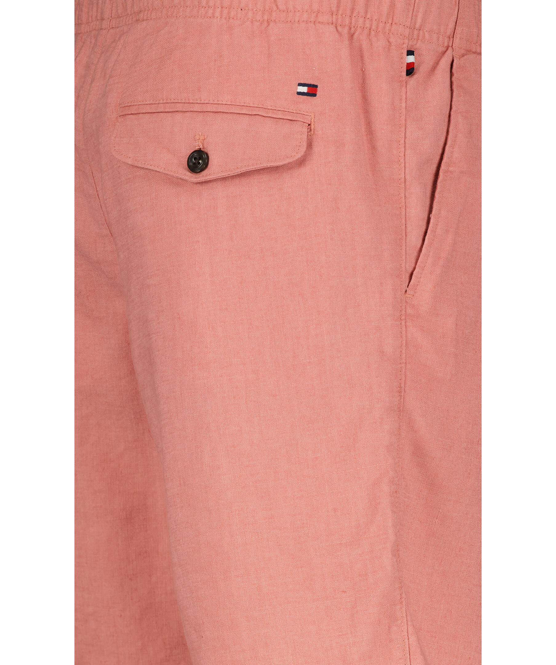 Urtvättade röda chinoshorts från Tommy Hilfiger. Skurna till en smal men avslappnad passform och tillverkade i en linneblandning. Två sidfickor samt två passpoalfickor bak med knapp. Elastiskt dragsko i midjan. Broderat Tommy Hilfiger märke ovanför ena bakfickan.
