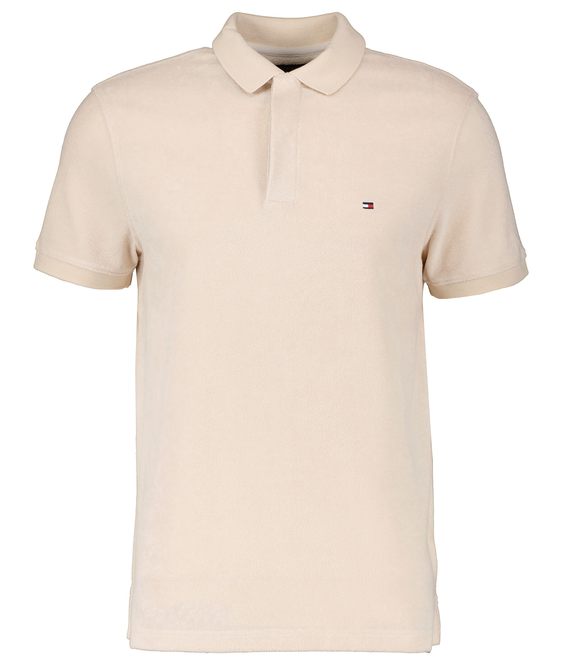 Ljusbeige piké i frotté från Tommy Hilfiger. Tillverkad i bomullsblandning med en rak, avslappnad passform. Korta slitsar i sidorna och finstickad krage med tre dolda knappar.