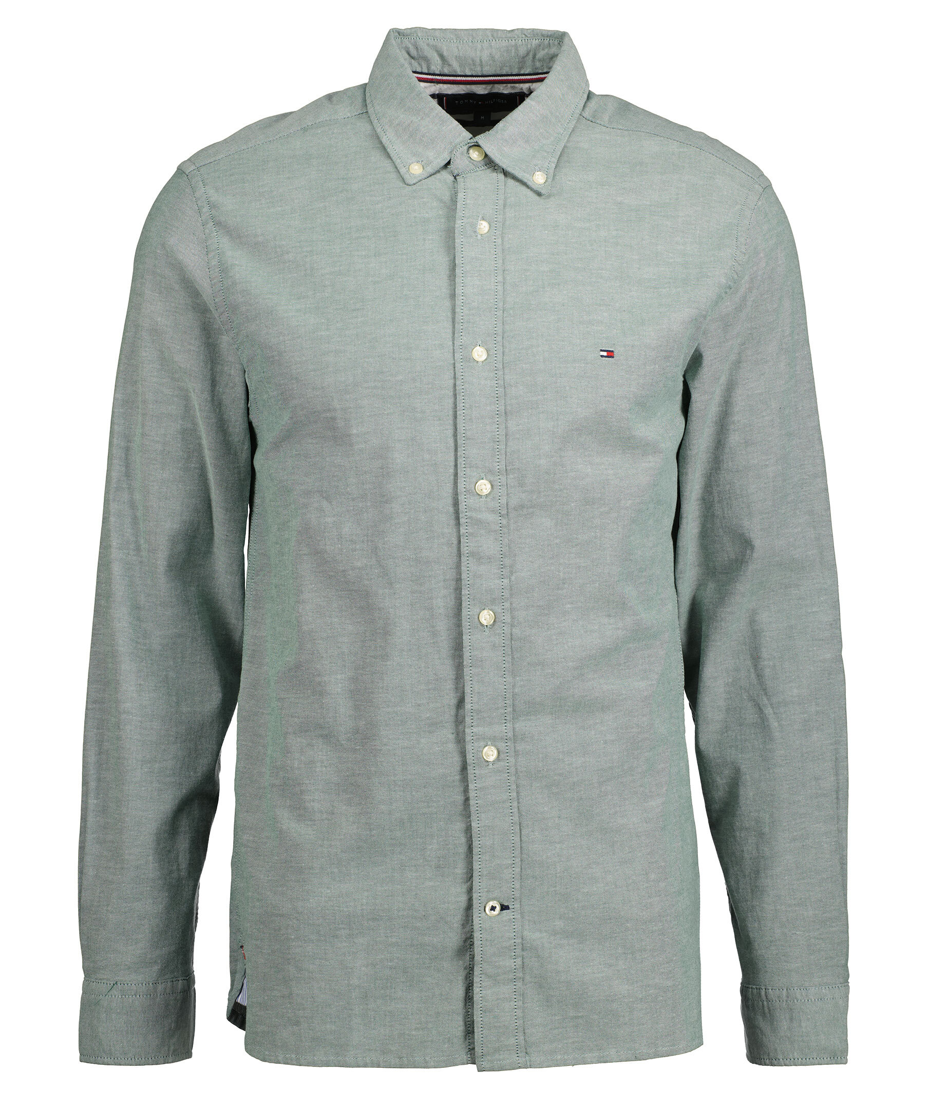Ljusgrön skjorta i Regular fit från Tommy Hilfiger. Tillverkad i stretchig bomull. Har vita knappar hela vägen fram, button down krage och dubbla manschetter. Liten broderad logotyp på vänster bröst. Små slitsar i sidorna med randigt kontrasttyg.
