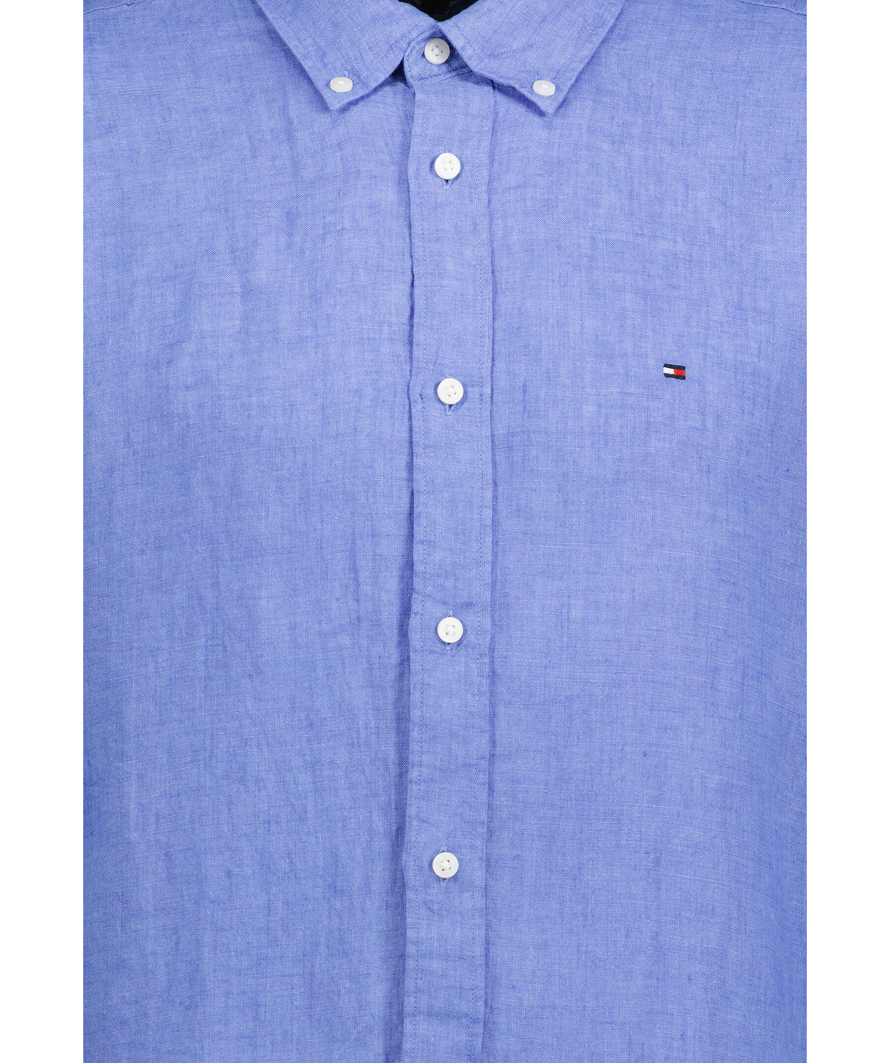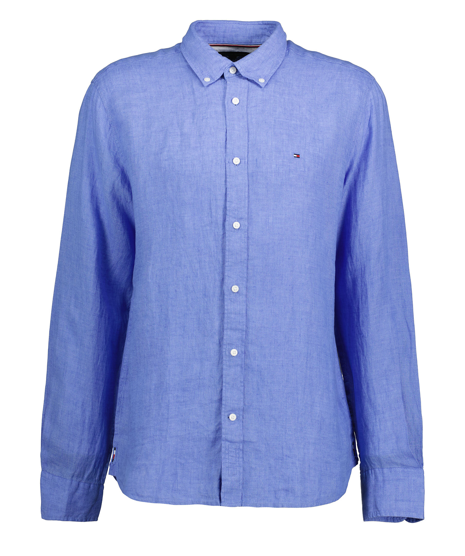 Blå skjorta från Tommy Hilfiger. Tillverkad i 100% linne. Button-down krage och en liten broderad Tommy Hilfiger flagga på bröstet. Plaggfärgad. Normal passform.