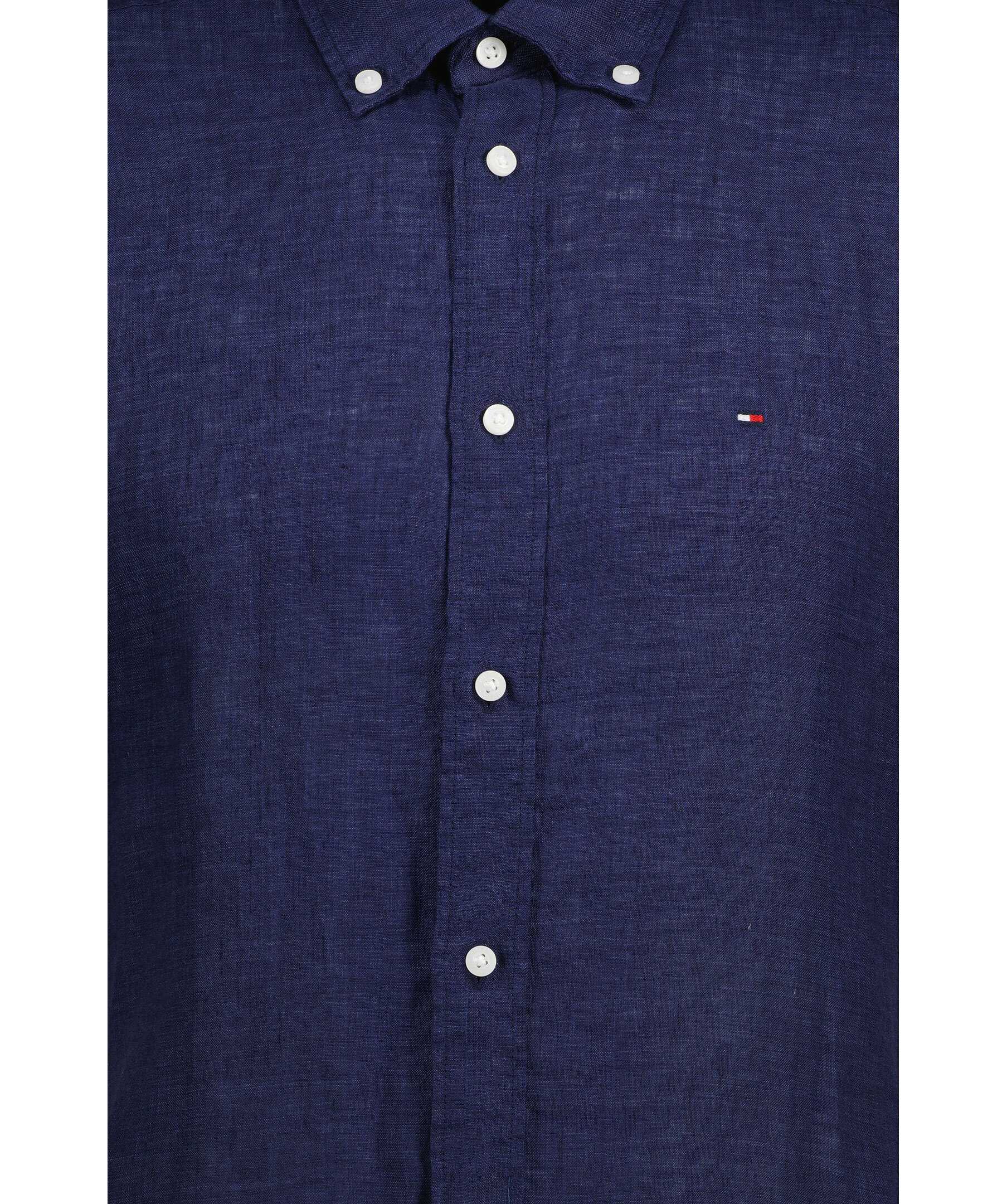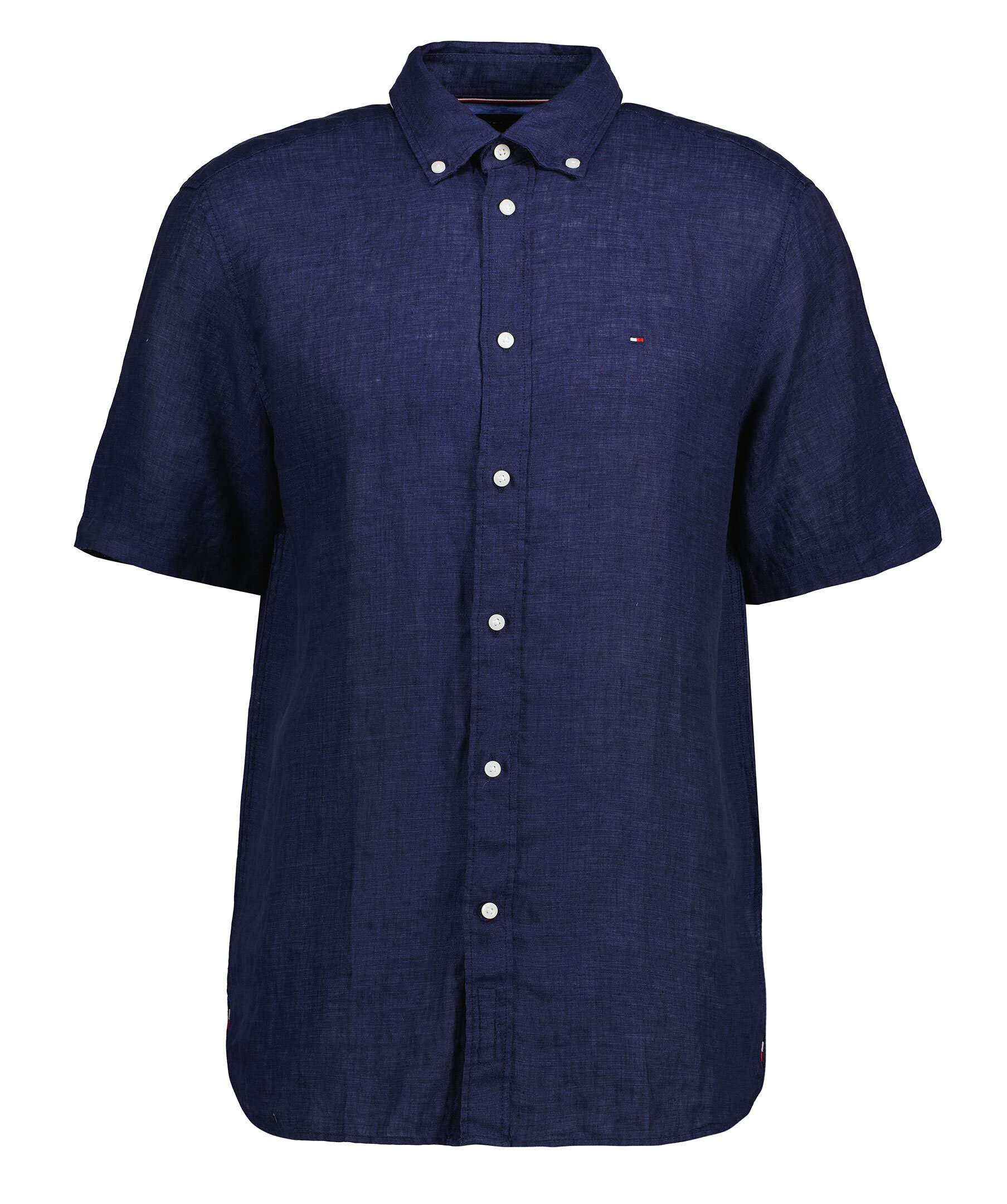 Marinblå, kortärmad skjorta från Tommy Hilfiger. Tillverkad i 100% linne. Button-down krage och en liten broderad Tommy Hilfiger flagga på bröstet. Plaggfärgad. Normal passform.