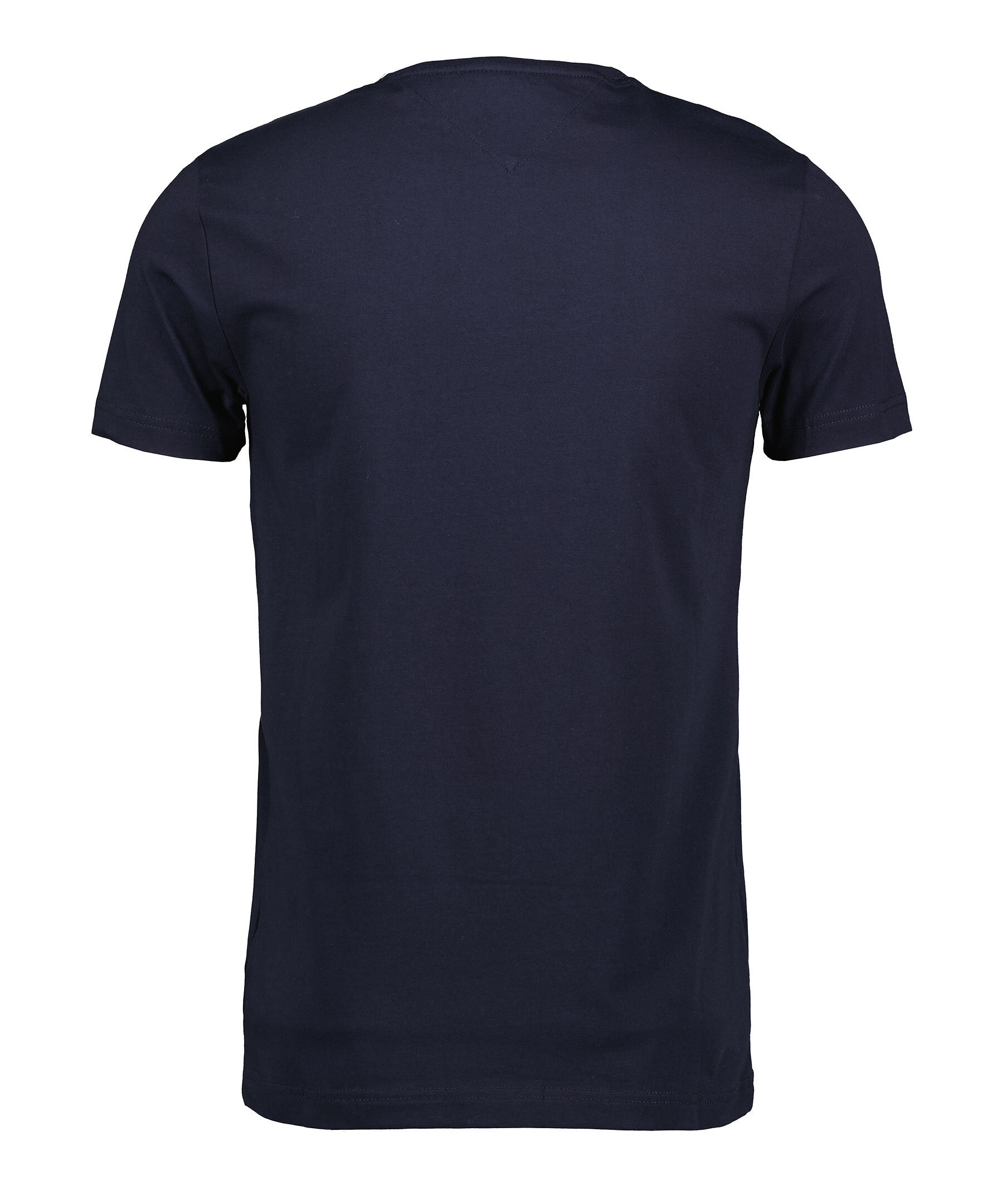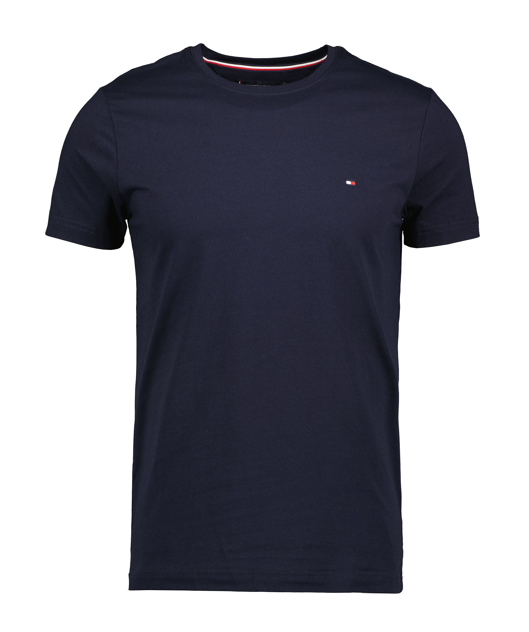 Marinblå t-shirt från Tommy Hilfiger. Tillverkad i stretchbomullsjersey. Rund hals och med ett Tommy Hilfiger flaggabroderi på bröstet. Extra slim fit.