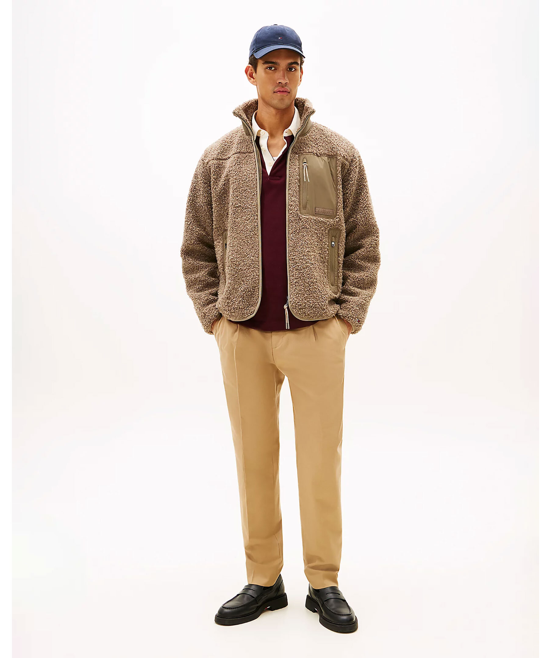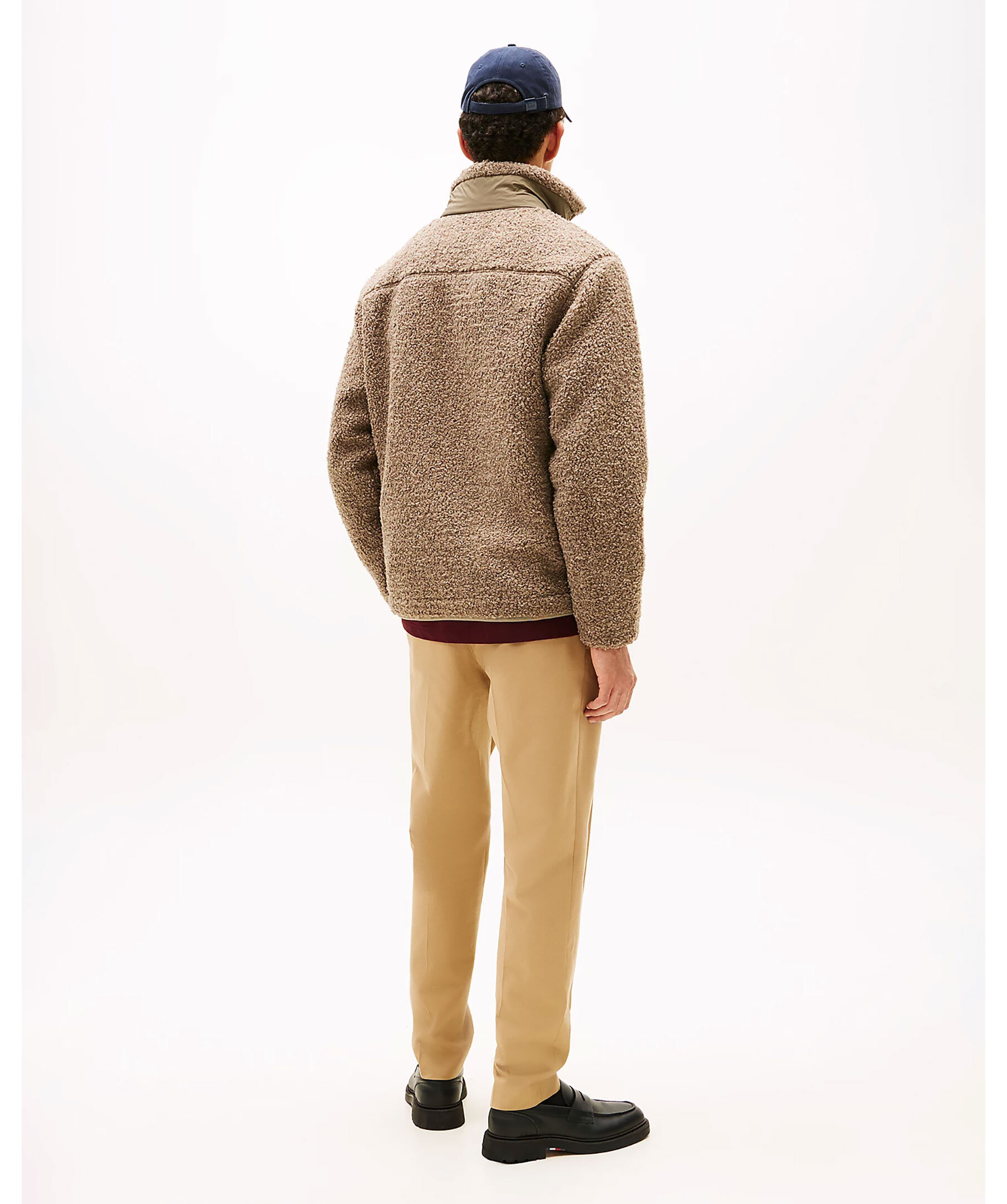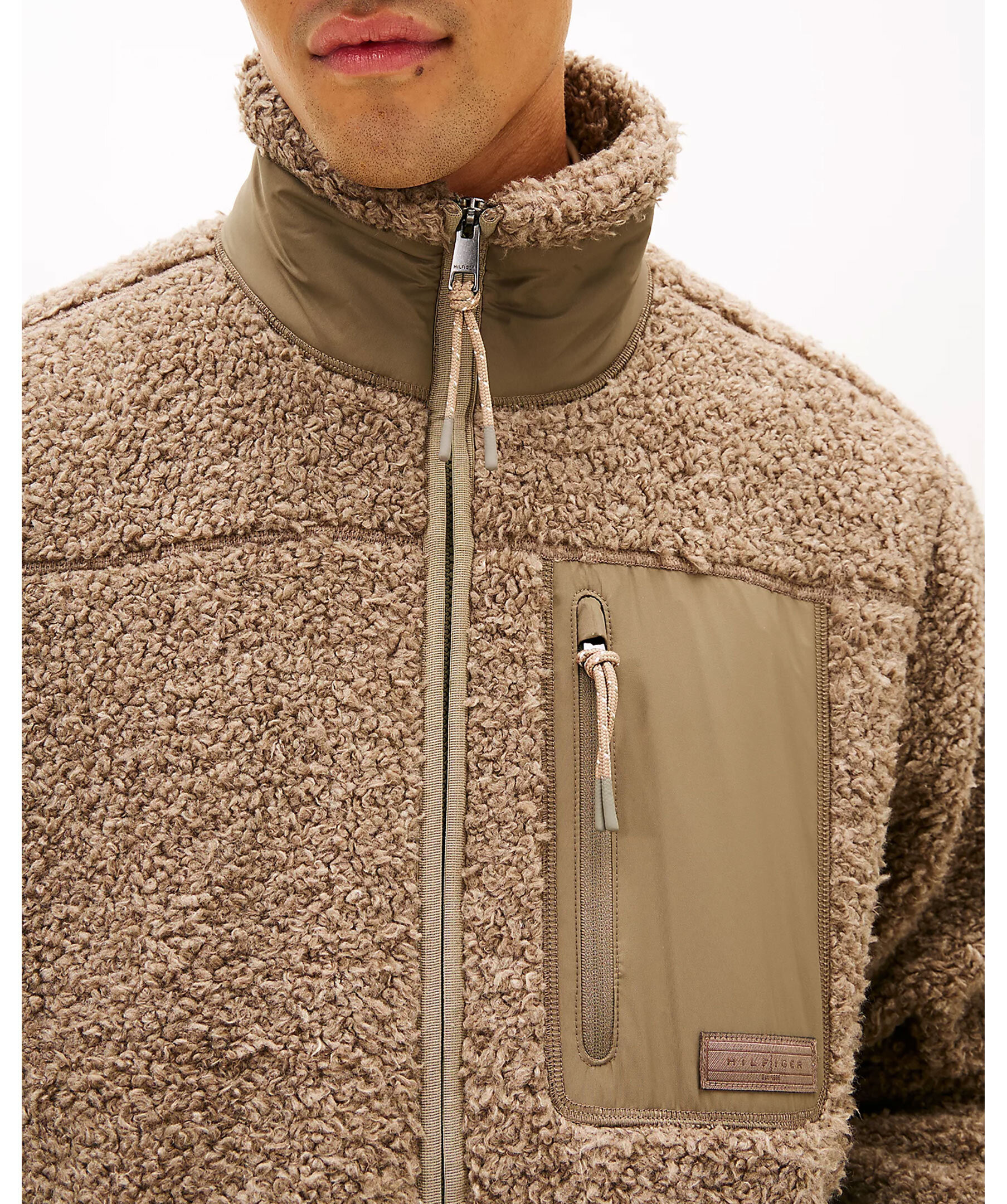 Beige, mysig teddyfleece‑jacka från Tommy Hilfiger i en modern, avslappnad look – perfekt som mellanlager eller lätt ytterplagg. Jackan har dragkedja hela vägen fram, hög krage för extra värme. Fickorna har tvåvägsdragkedjor och detaljer i blandad textur som lyfter helhetsintrycket.