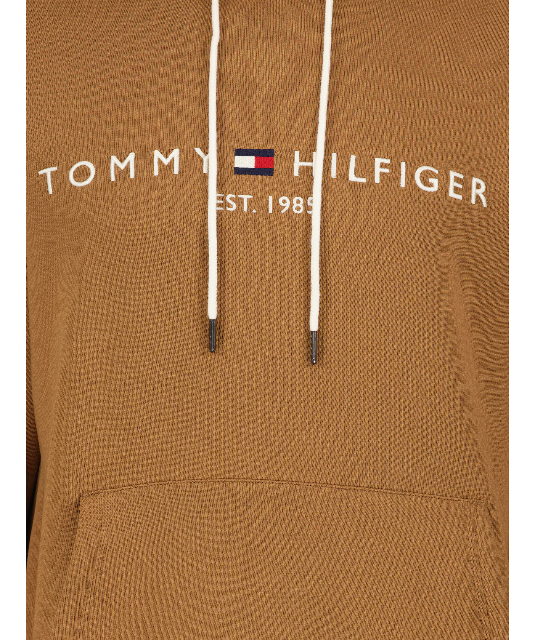 Brun hoodie från Tommy Hilfiger. Broderad logotyp på bröstet, stor ficka på bröstet, muddar i ärmslut. Tillverkad i bomullsmix.