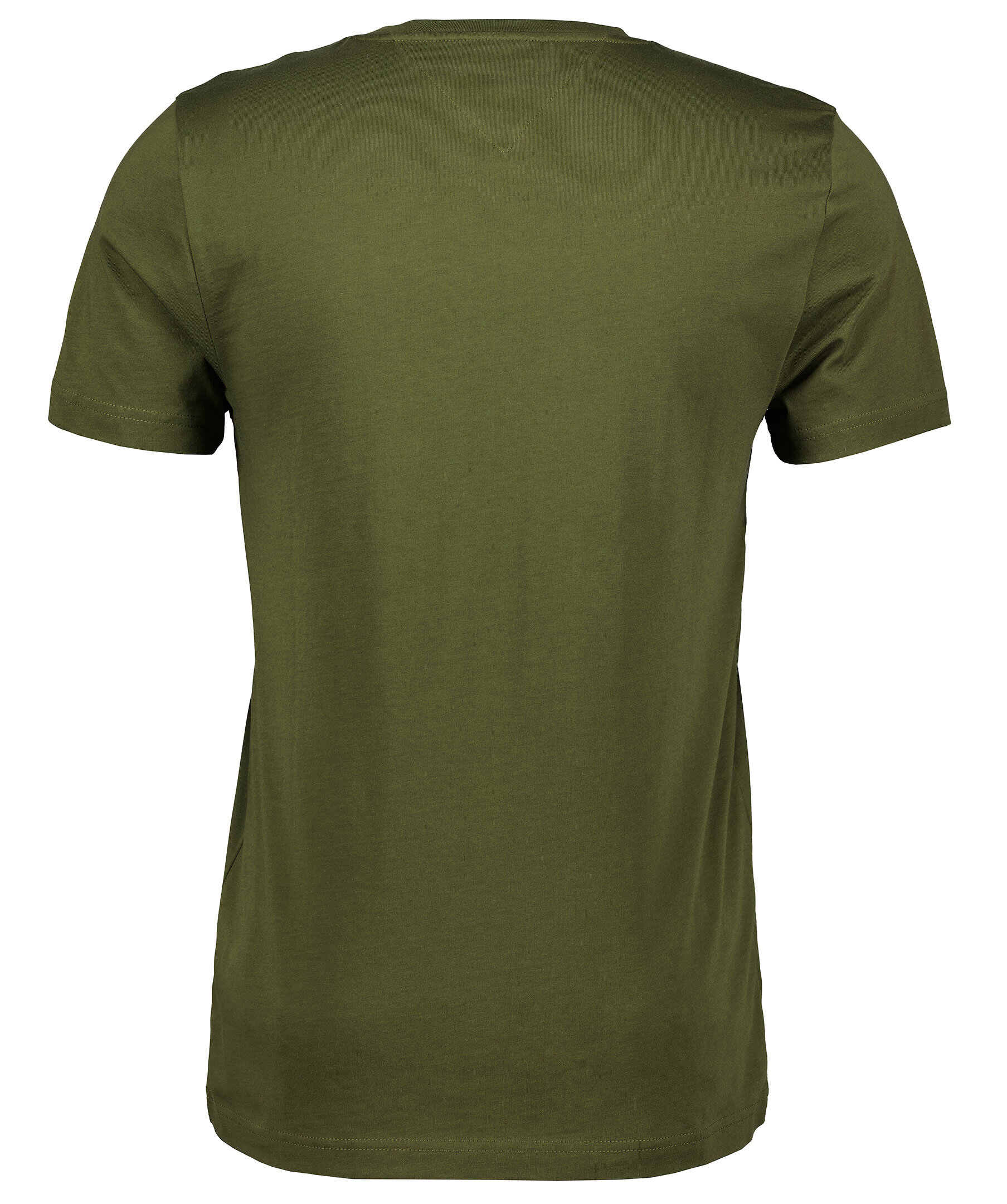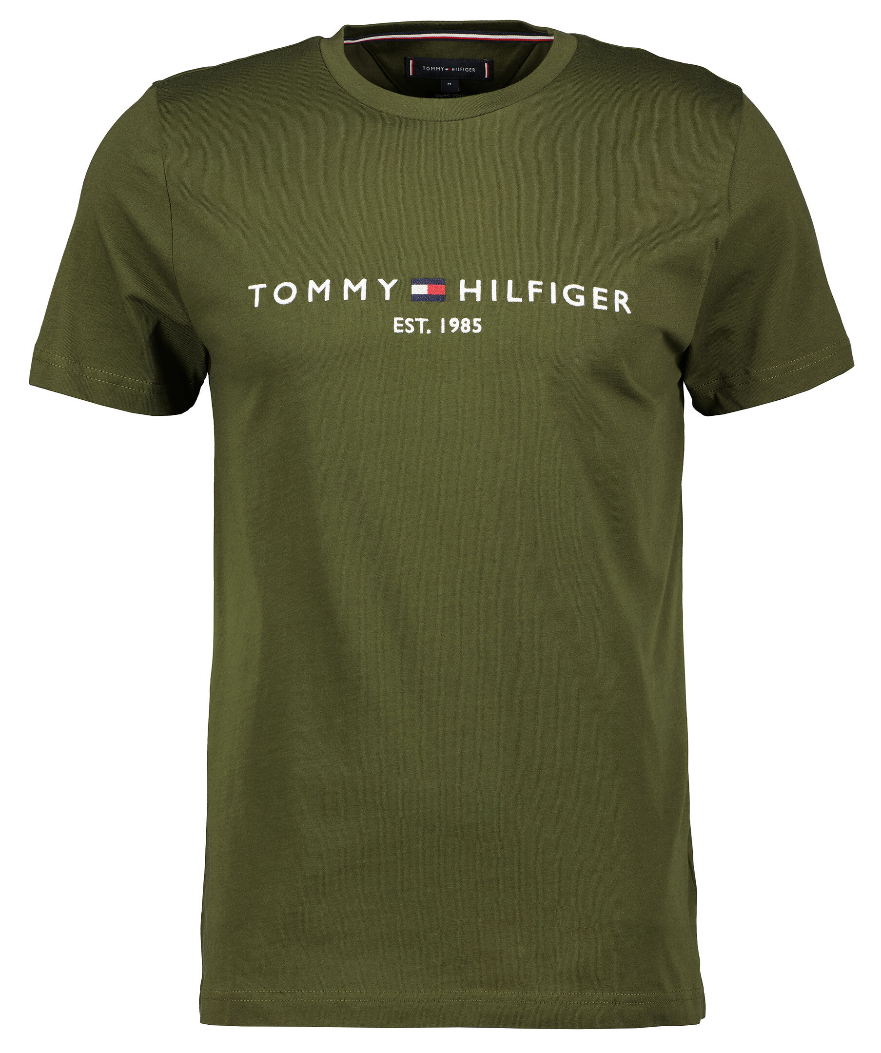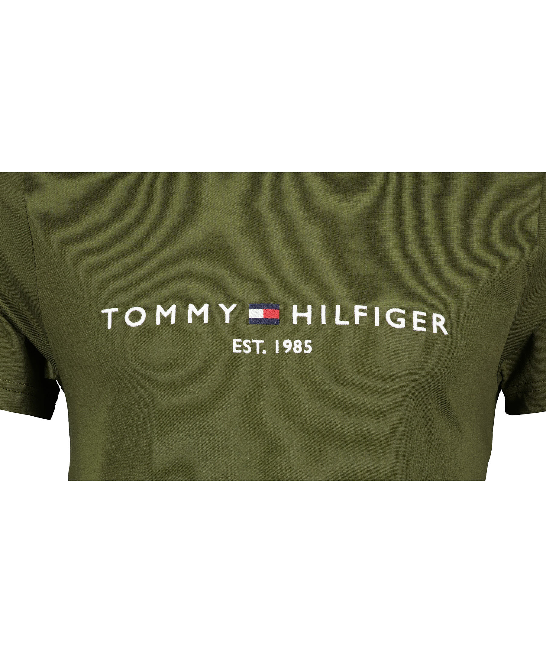 Militärgrön t-shirt från Tommy Hilfiger. Broderad logotyp över bröstet och liten broderad logotyp på vänster ärm. Rundad halsringning och rak modell.