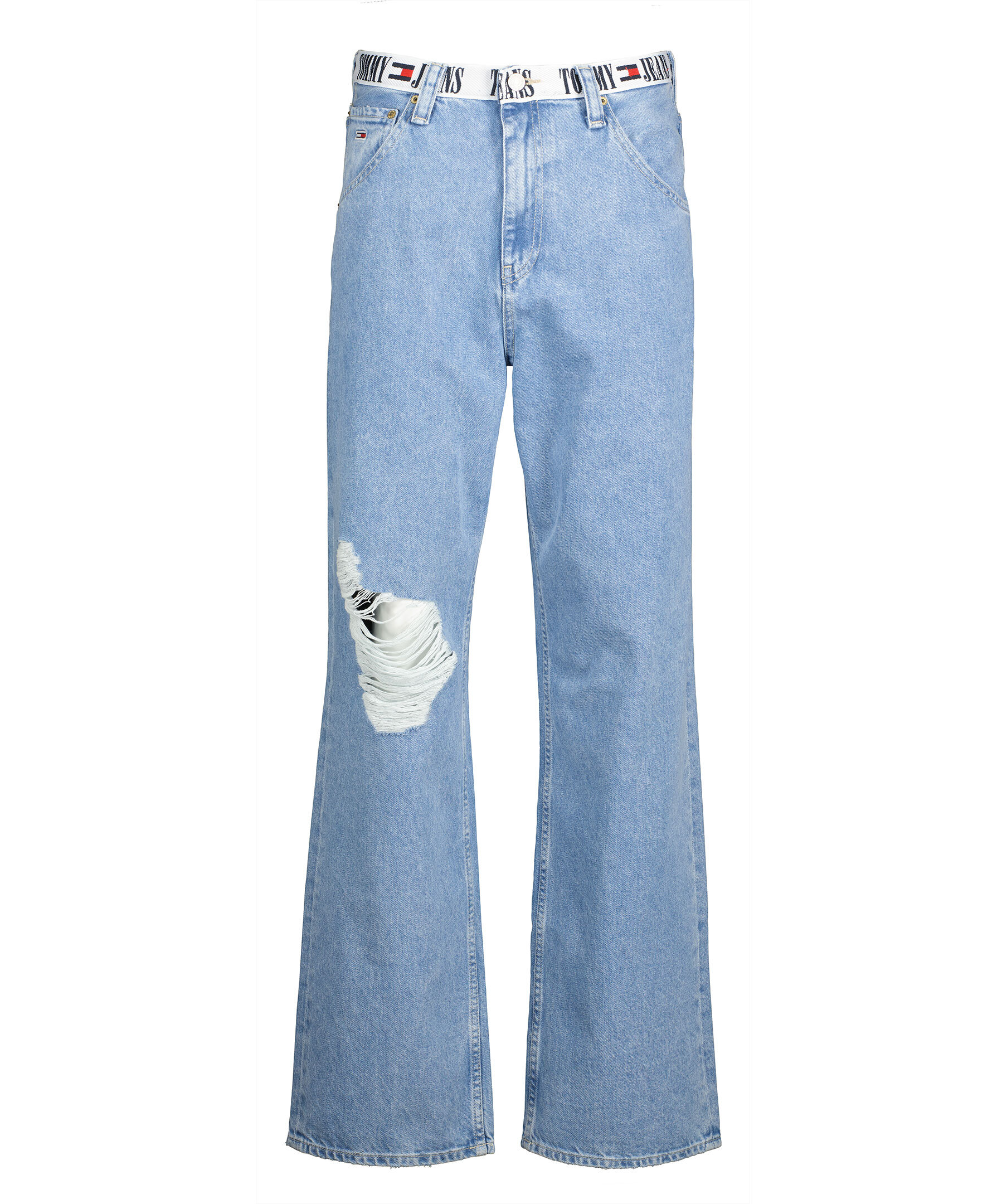 Ljusblå jeans från Tommy Jeans. Byxorna har fem fickor. Tillverkad i 100% bomull. Broderad logotyp på höger sida. Slitningar på högerknä. Jeansen är designade i en oversized modell.