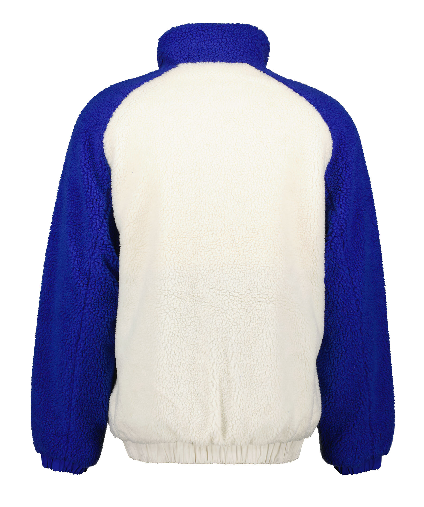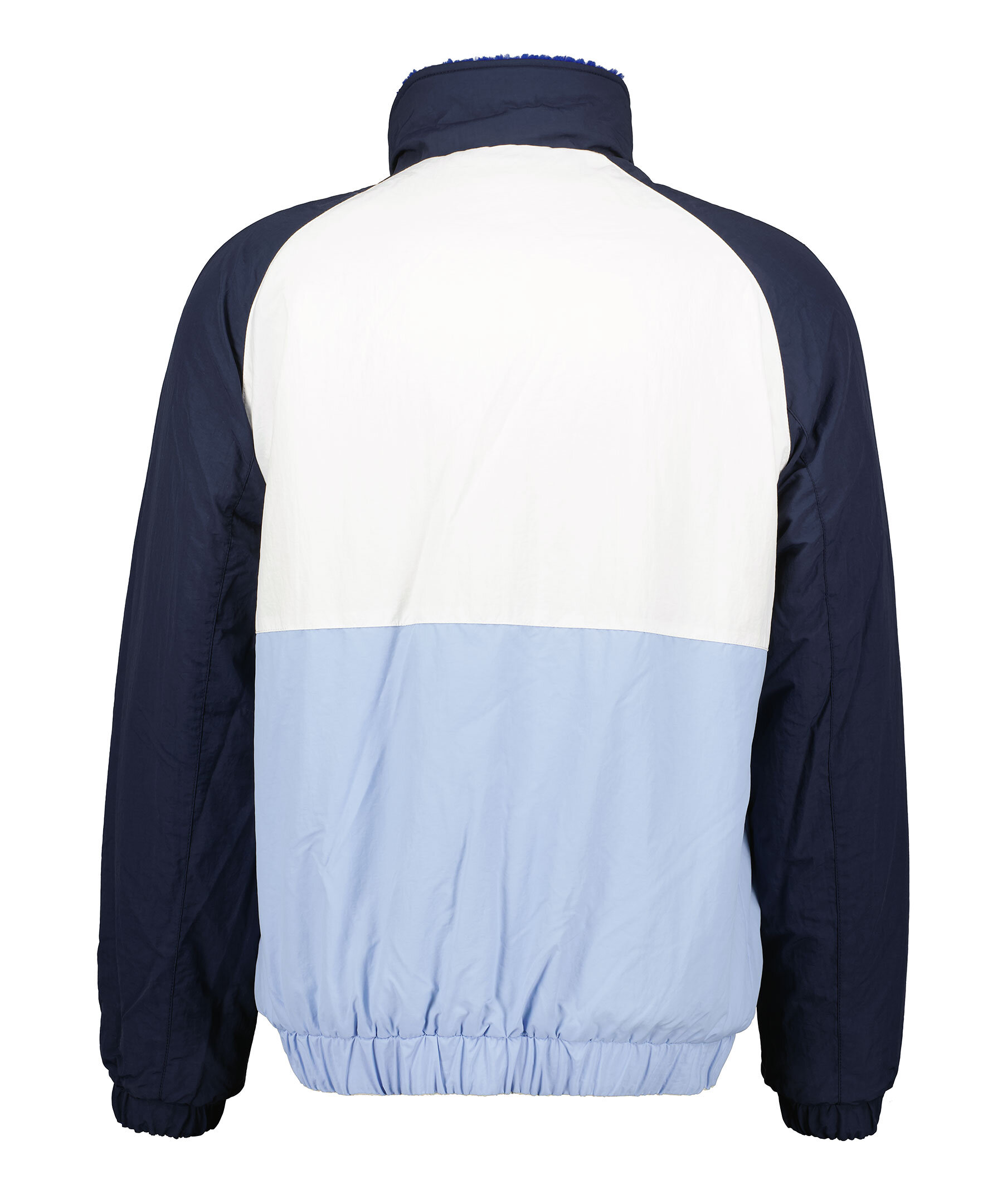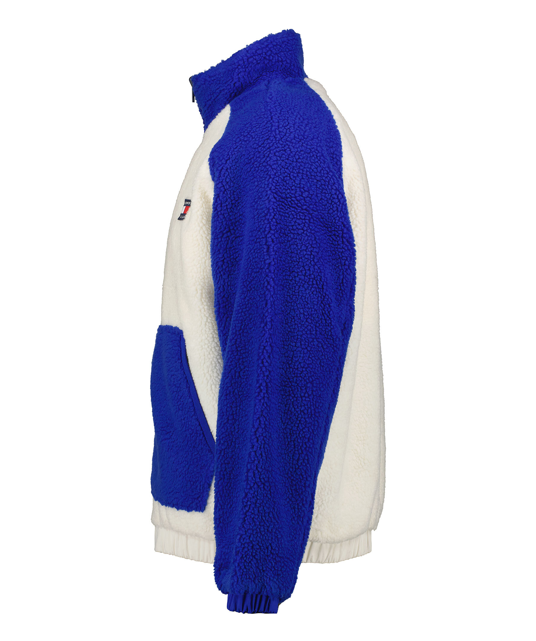 Blå och vit jacka från Tommy Jeans. Jackan är reversible och är på ena sidan i ett teddy-material med koboltblåa ärmar, krage samt fickor och på andra sidan marinblåa ärmar samt krage, ljusblå nederdel och resterande vitt. Båda sidorna har en broderad logotyplapp på vänster sida på bröstet. Jackan stängs med dragkedja.