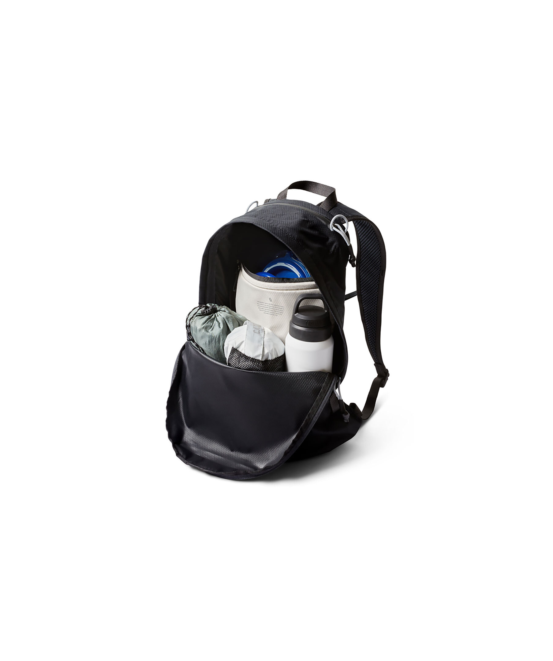 Designed to be packed down into daily backpack or travel bag. Pockets for separating sunglasses, water bottle, keys and small essentials. Zip pocket with key clip. Loops for attaching bike lights. Recycled body fabric, webbing and mesh. SPECIFICATIONS: Capacity: 20L. Dimensions: 480 x 270 x 180mm.