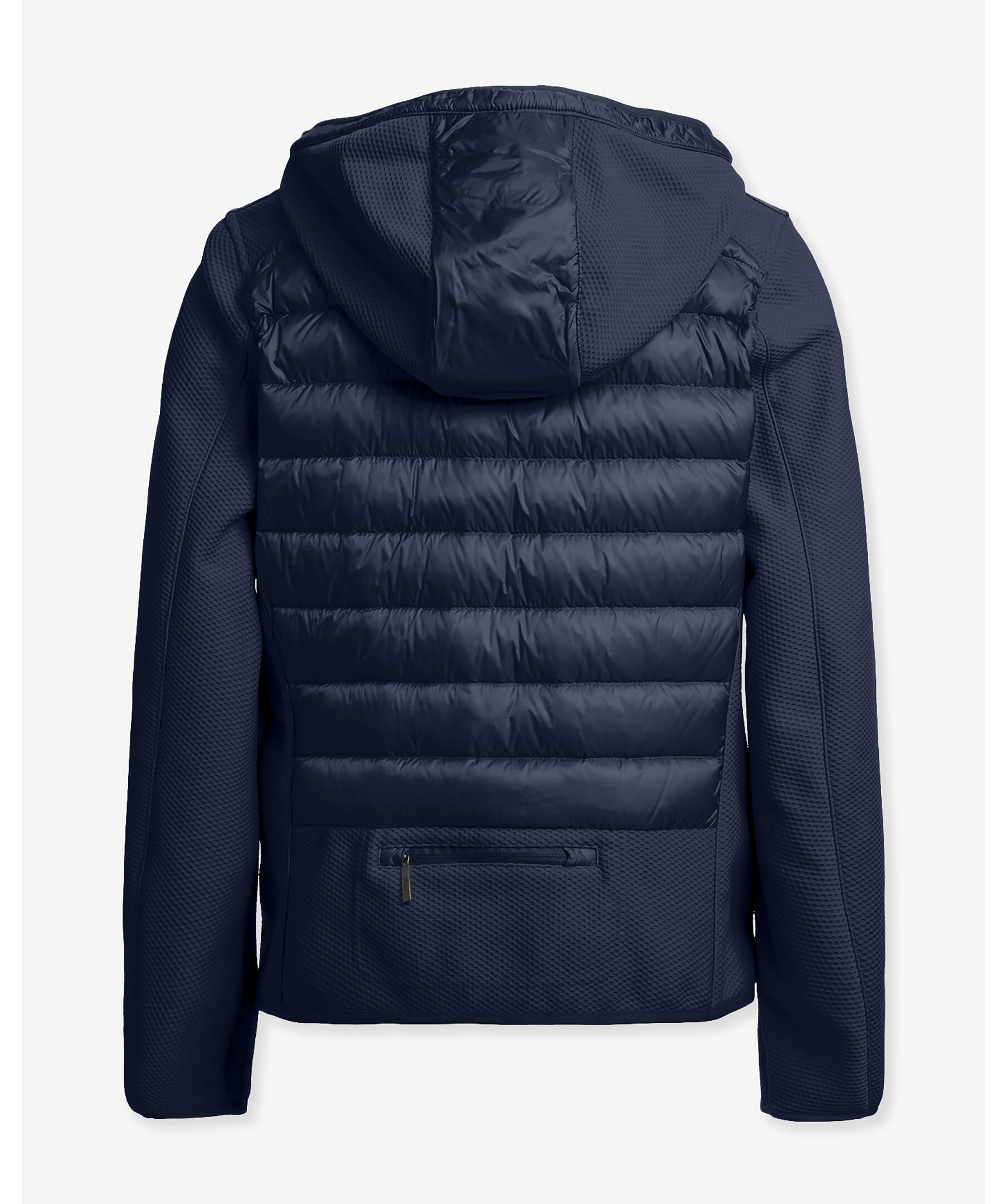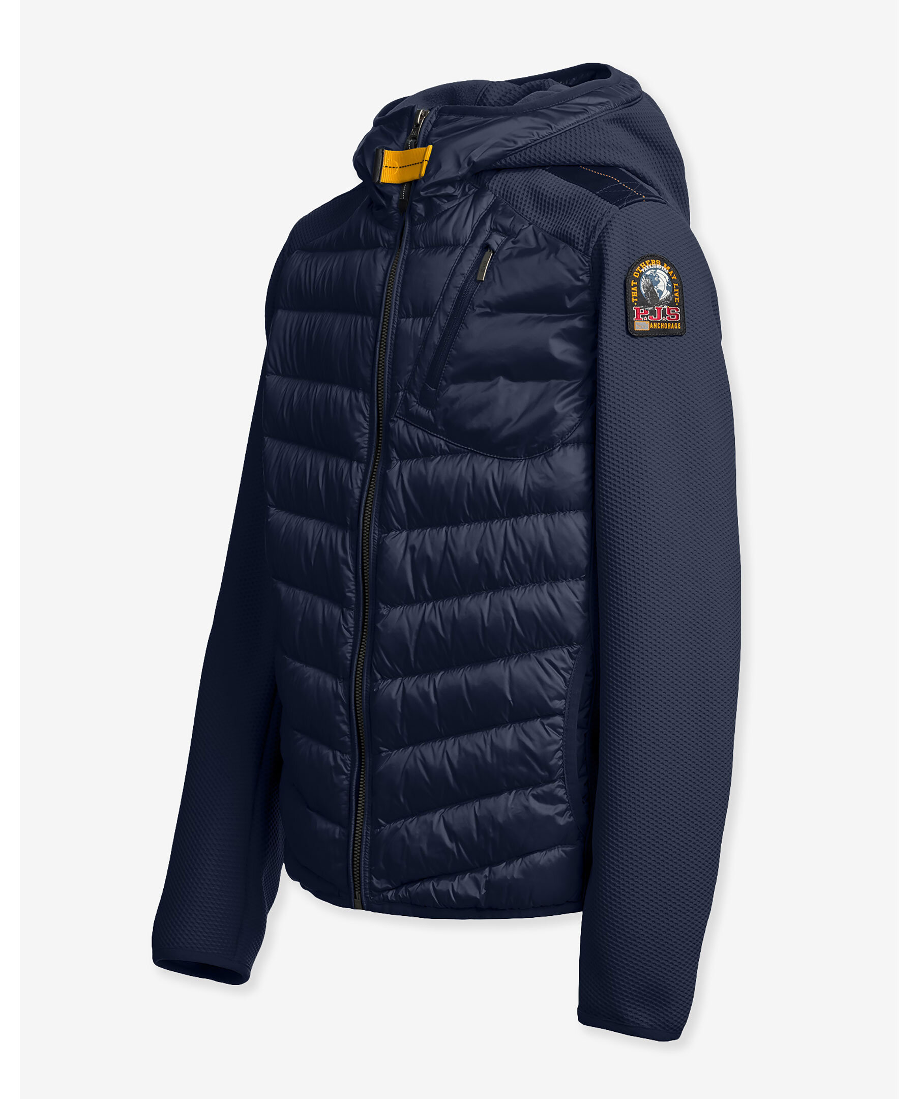 Mörkblå hybrid jacka med huva från Parajumpers. Jackan har två sidfickor samt en snedställd bröstficka med dragkedja. Patch-logotyp på vänster ärm. Ficka med dragkedja i svanken. Dragsko i huvan. Tillverkad i en polyamid- och polyesterblandning. Jackan stängs med tvåvägsdragkedja. Ventilationshål i armhålorna. Perfekt för mellansäsongsväder, kan enkelt packas ihop för att alltid vara redo när det blir svalare.