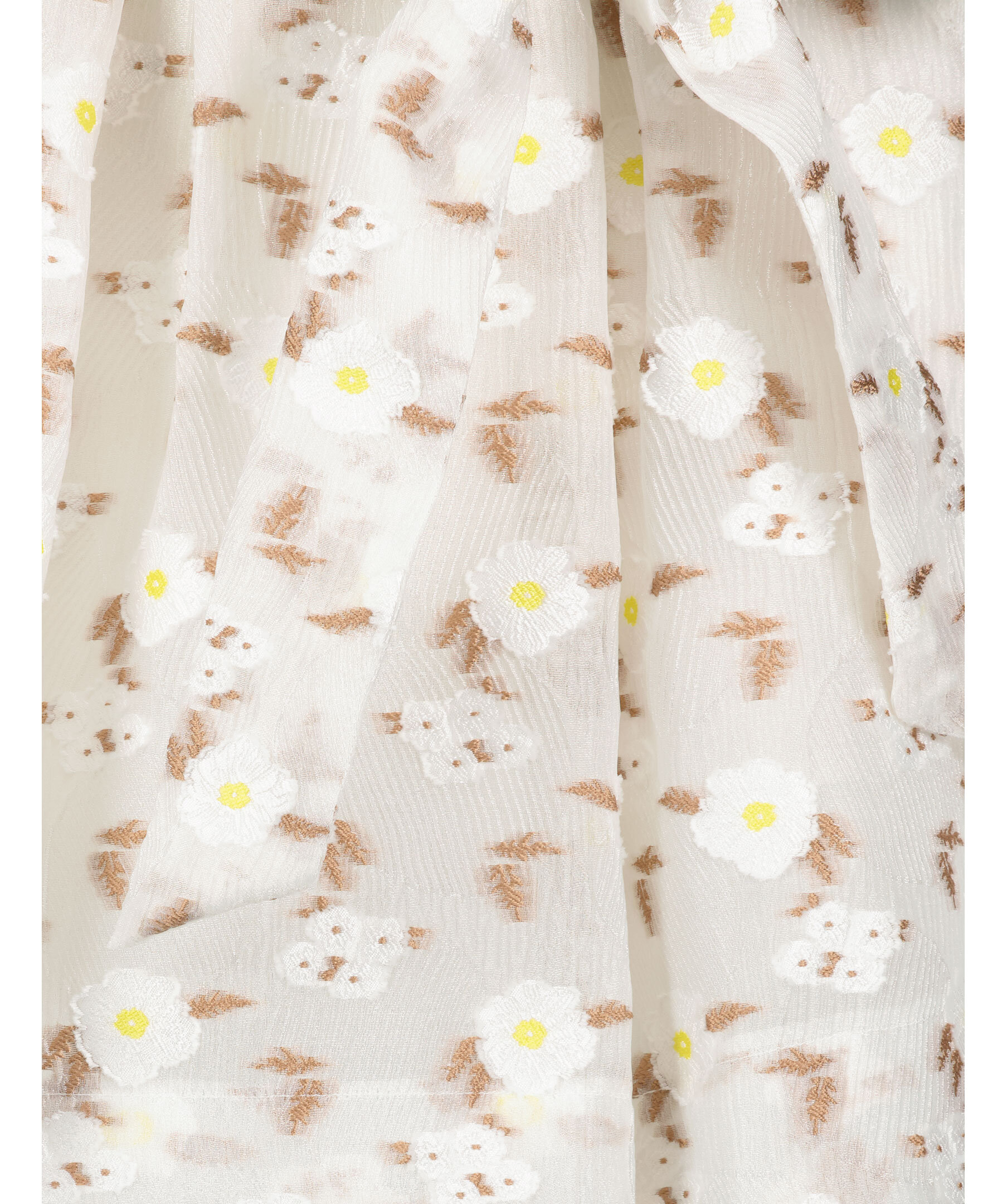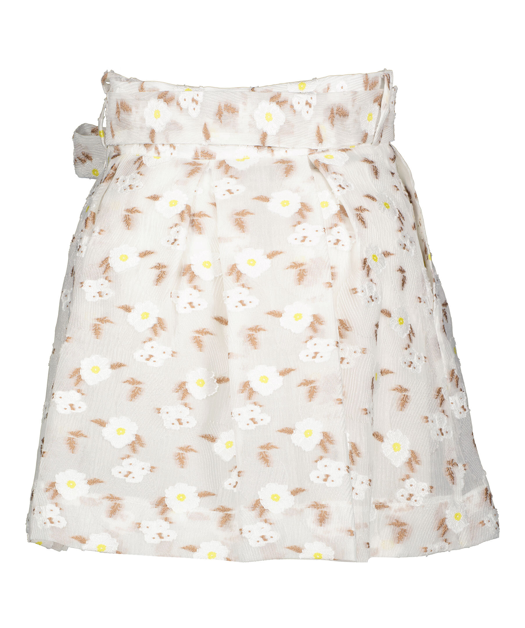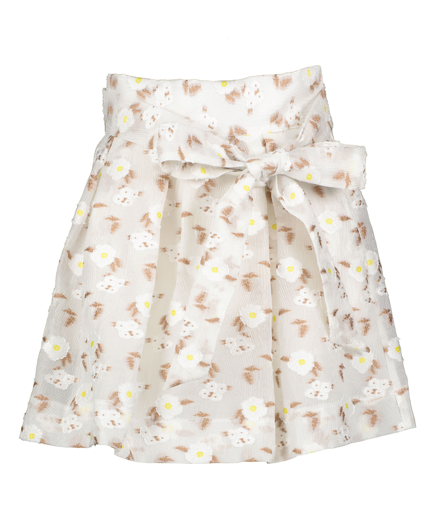 Vit mönstrad kjol med gula och vita detaljer från Custommade. Avtagbart band som knyts framtill. Hällor. dragkedja i sidan. Två fickor framtill.