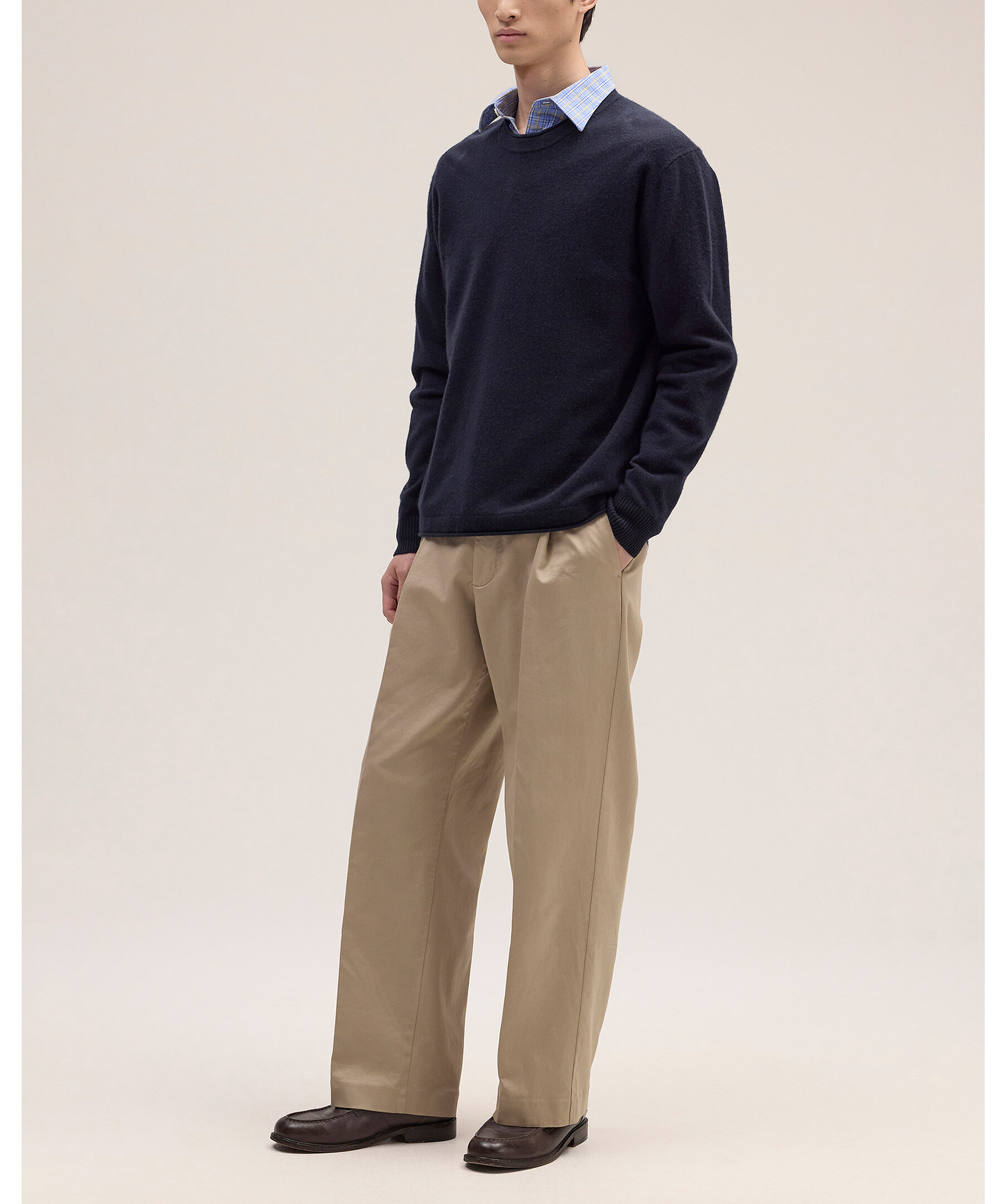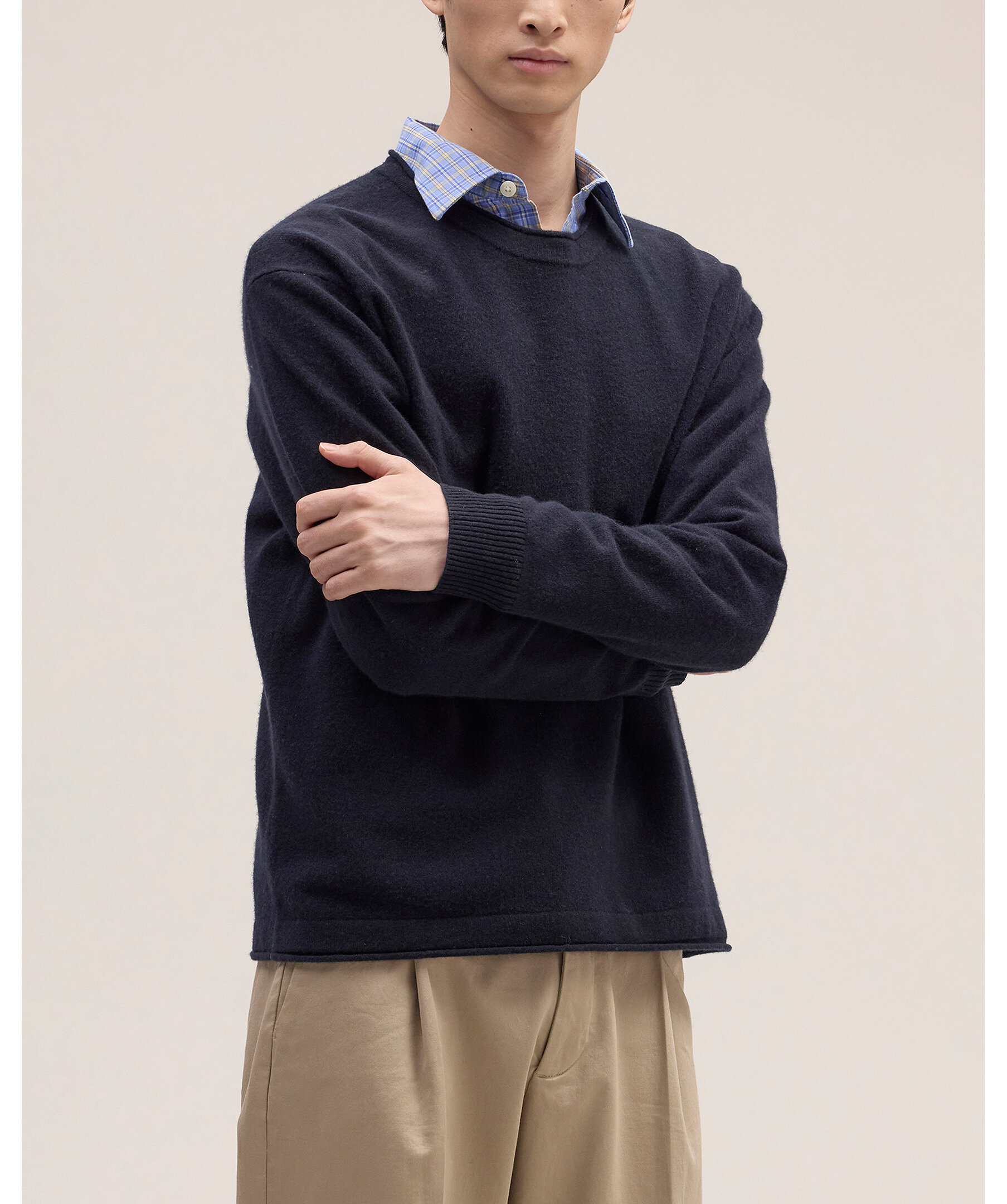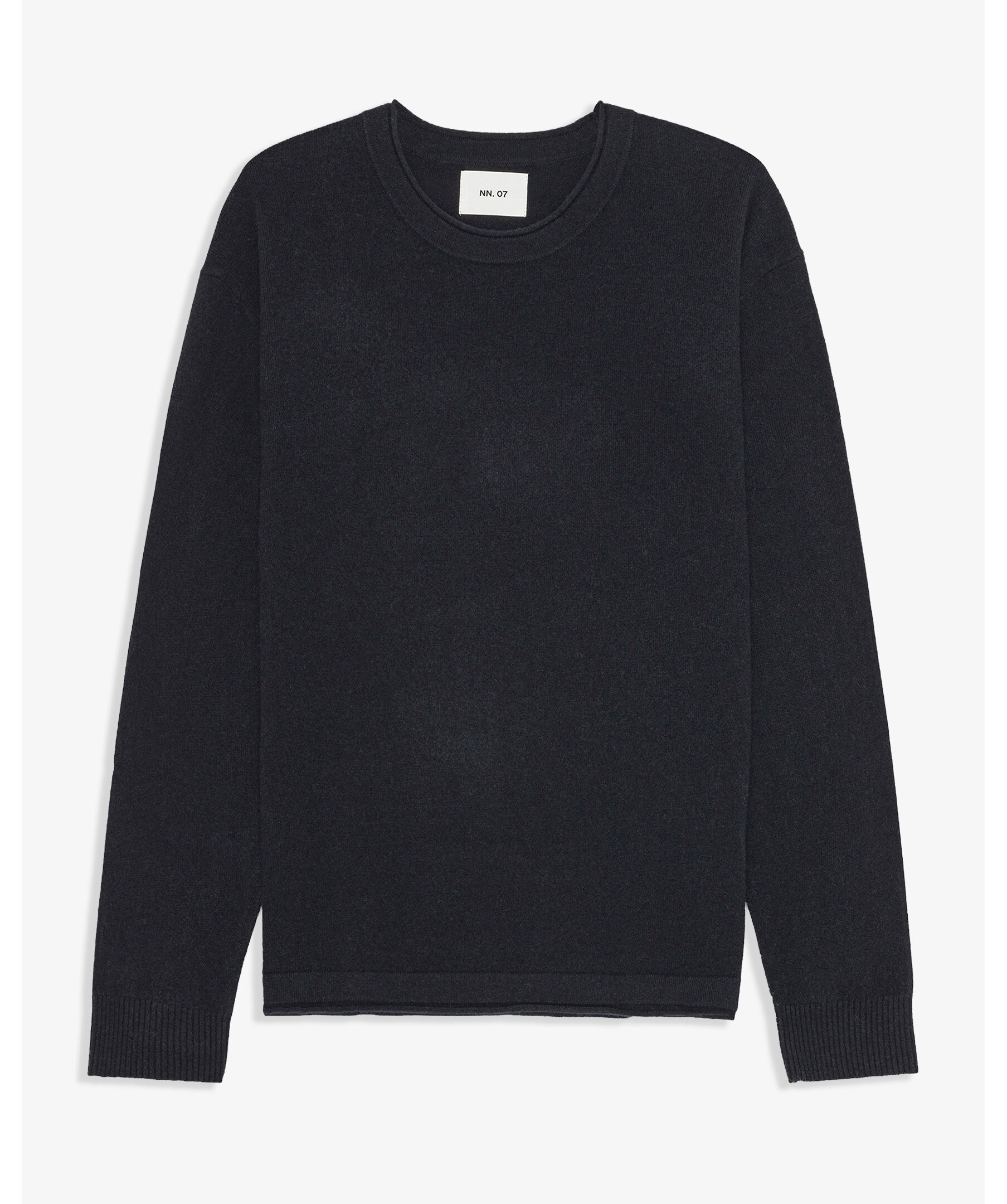 Mörkblå stickad tröja från NN07 i mjuk, borstad certifierad ull med klassisk crew-neck och rullade kanter vid hals och nederkant. En tidlös och elegant baströja som passar perfekt i lager-på-lager-looks under kyligare dagar.