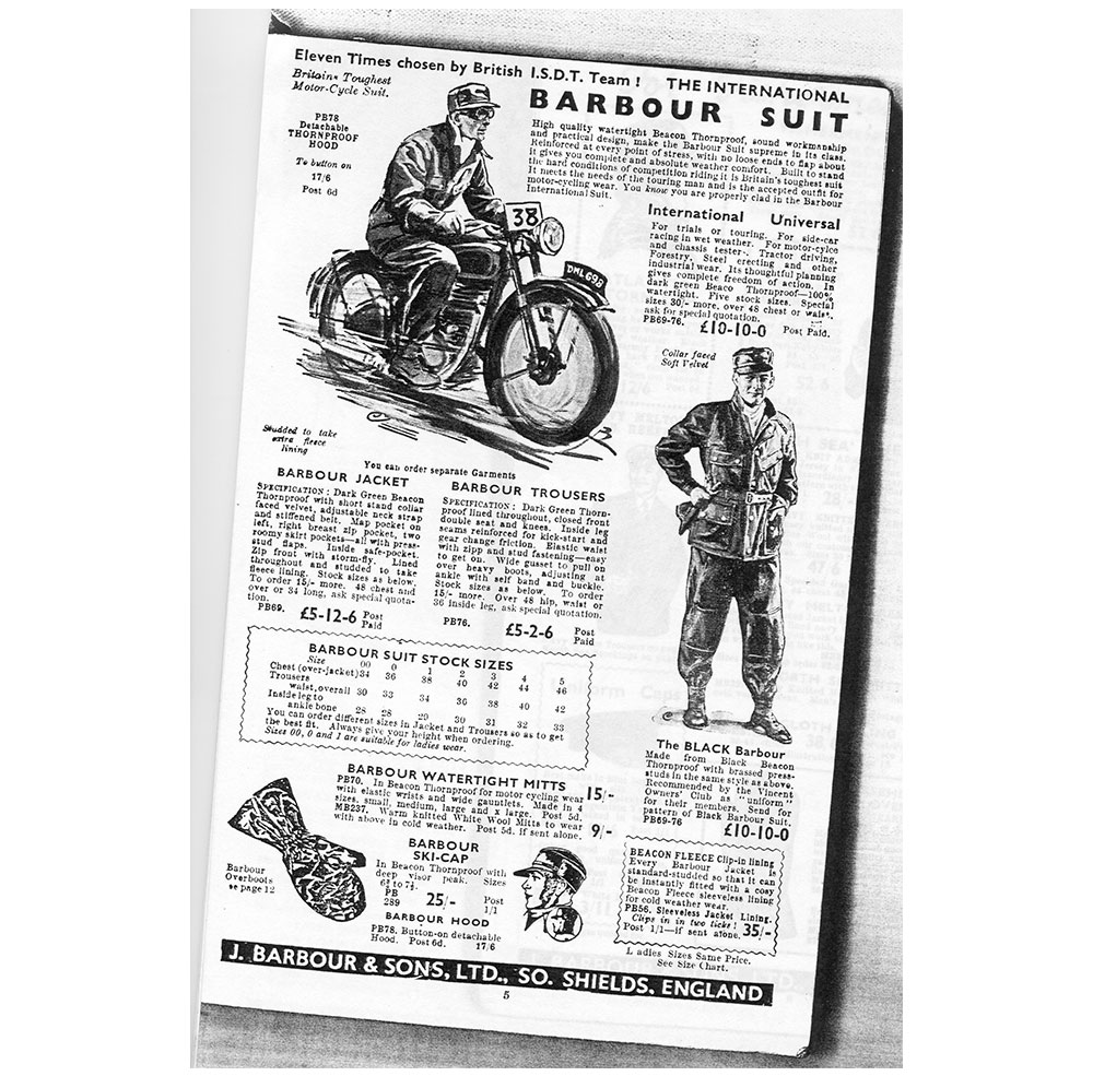 1928 träder grundarens sonson Duncan in i företaget och med sig har han sin passion för motorcyklar. Det dröjer inte länge innan Barbour lanserar en ny hållbar kollektion. Denna gång riktad till Englands alla motorcyklister. Kollektionen blev, även denna, en succé och blev så gott som standard inom brittisk motorsport i över 40 år. Detta var starten för Barbour International.