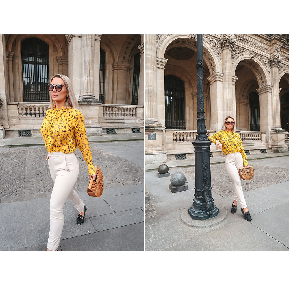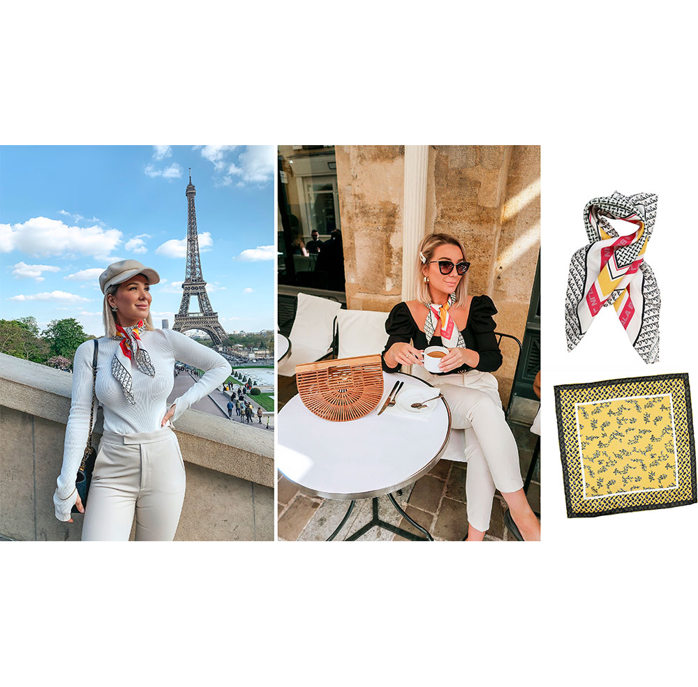 På bilderna intill har jag på mig en oerhört vacker sjal från La la Berlin med färgerna svart, att, rosa och gult. Sjalen drog till sig blickar och piffade upp flera olika outfits. Men jag har ju även kikat på den gula varianten, färgen är ju så fin och fräsch. När jag befann mig i Paris körde jag en klassisk knytning runt halsen, det kändes kvinnligt och klassiskt. Nu när jag är hemma i Stockholm igen så använder jag gärna sjalen i håret. Perfekt som en håraccessoar eller cover up när du inte har hunnit tvätta håret på ett tag.. Det finns flera olika sätt att använda sjalen på, använd din fantasi eller google om du fastnar.