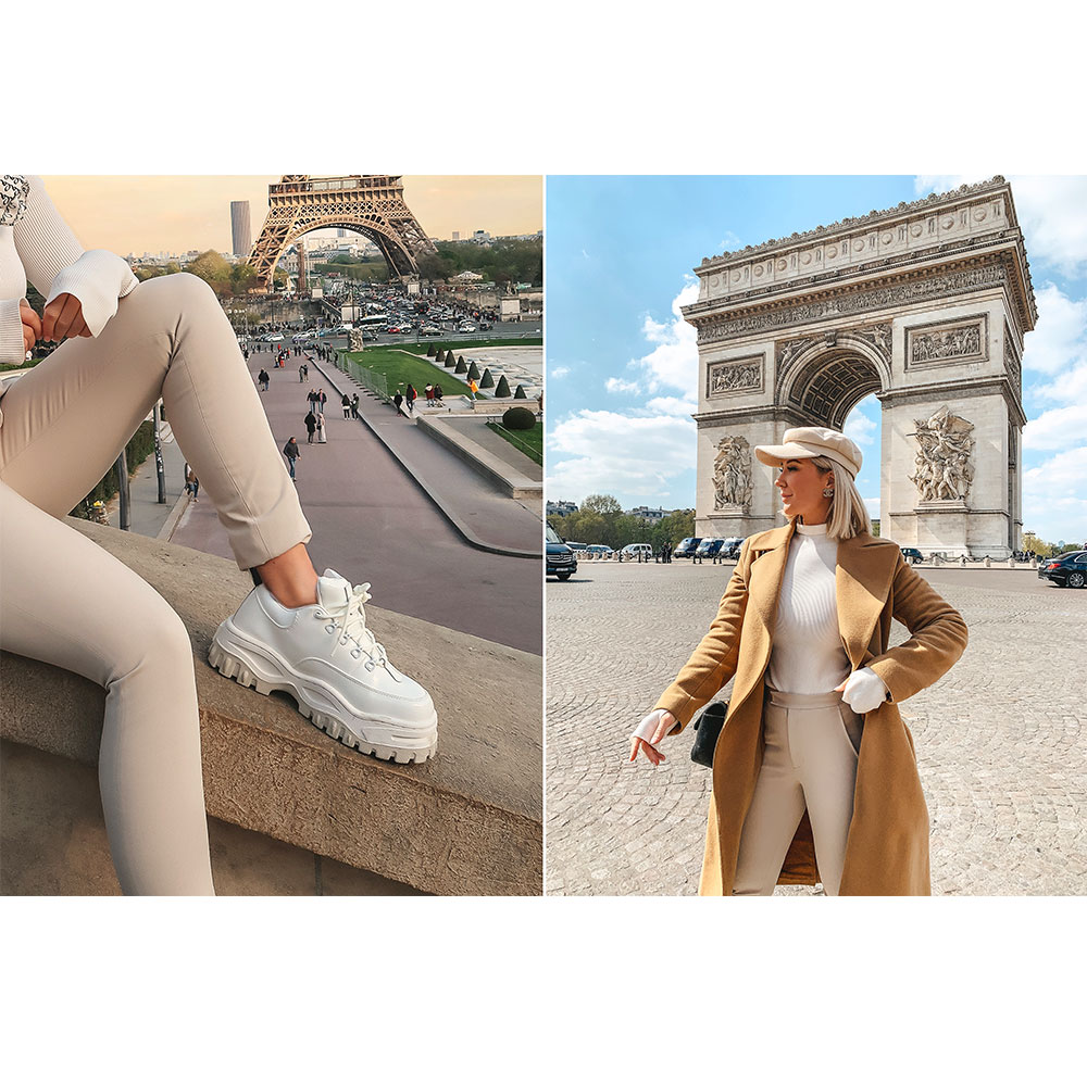Jordnära toner som beige och vitt är återkommande färger i min garderob. Jag trivs väldigt bra i neutrala färger och låter dom stå för basen. När jag har en snygg, neutral bas adderar jag därefter detaljerna som sticker ut. Det kan vara en färgglad sjal ena dagen, och en annan kan det vara ett par fräscha sneakers, tex som ett par från trendiga märket Eytys . Sällan får jag så mycket komplimanger för ett par skor som jag fick när jag hade på mig ett par vita från just det märket. Jag kände mig snygg, bekväm och sportig. Perfekt när man ska promenera runt på gatorna i Paris och shoppa en hel del. OBS: Glöm inte att ta hand om dina vita skor så dom håller sig fräscha och snygga länge. Tvätta dom efter användning, använd en fuktig trasa med lite ljummet vatten. Spraya även gärna skorna med skyddade medel som finns att köpa i olika skobutiker. Till tunnare skor är det att rekommendera att använda skoblock så skorna håller formen. Det finns att handla på Johnells.