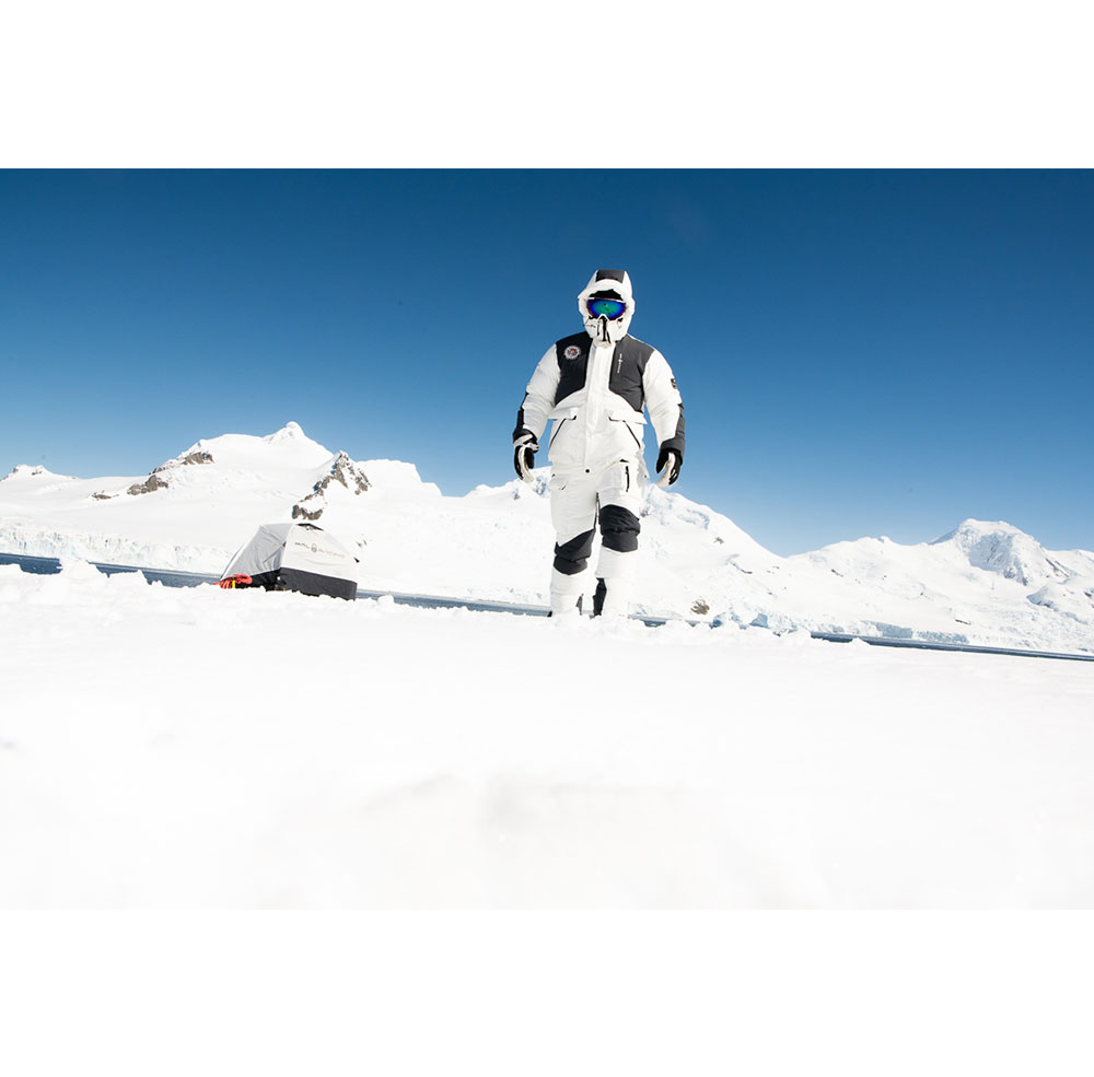 Antarctica Expedition Jacket har endast tillverkats i 150 numrerade exemplar. Jackan är fylld med Blue Sign- och RDS-certifierat dun och fjädrar med fill power 800. Den har VECTRAN®-förstärkning vid bröst. ärmar, rygg och på huvan. Den är även konstruerad i ett vind- och vattentätt stretchmaterial som skyddar mot den värsta kölden och blåsten.