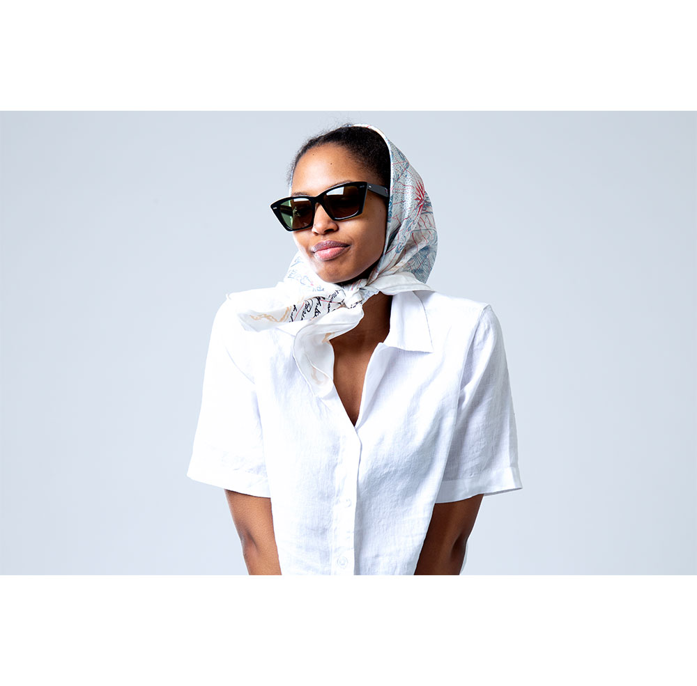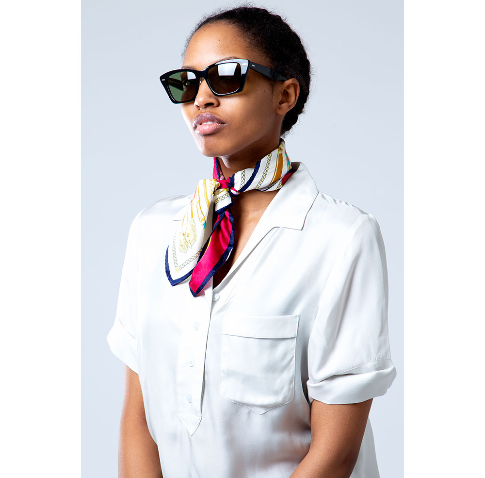 En vackert färgglad och mönstrad sidenscarf knuten runt en hästsvans är verkligen ett lekfullt sätt att ta det lilla tygstycket till nya nivåer. Du kan också prova att vira den runt en lös hårknut eller fläta in den i håret. Här finns det många möjligheter till kreativitet, och knappast någonting mer elegant!