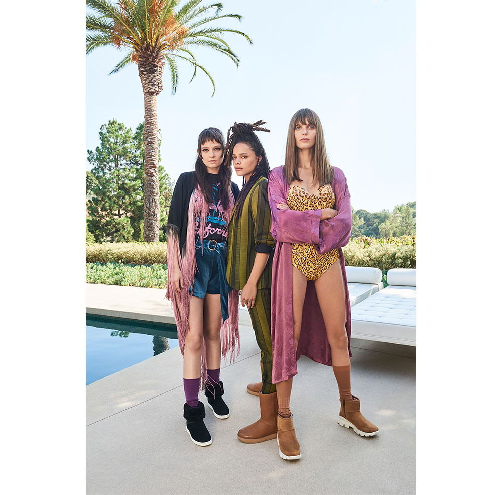Även Kaliforniens kändistäthet har haft inverkan på UGGs framgångar. Skorna har under en lång tid setts på flertalet kända personer som till exempel Sarah Jessica Parker, Oprah Winfrey och flera andra. De har även setts i flera stora serier och filmer som till exempel Sex and the City. UGG har alltid haft en stor promotion genom kändisvärlden vilket gjort att varumärket verkligen fått ett stabilt fäste i modevärlden.