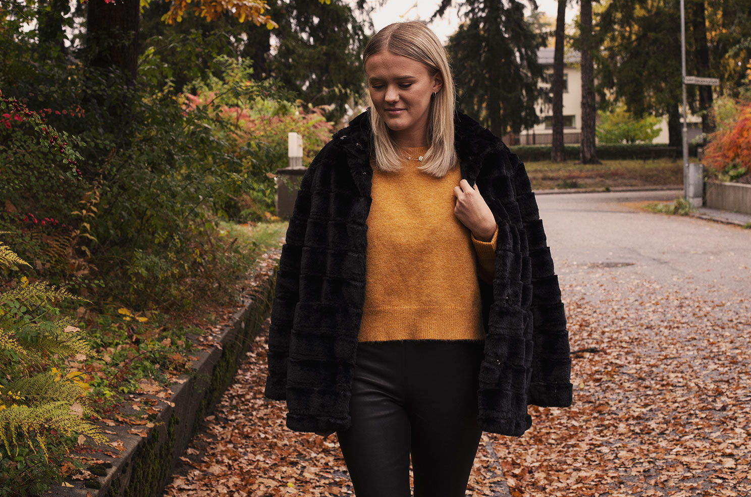 När det gäller ytterkläder är kanske rocken och kappan de mest klassiska. I rätt material håller de i många år, som denna stilrena rock i ullmix från J Lindeberg och kappan Ciannia från Tiger of Sweden. Något som trendat stort de senaste säsongerna och snarast kommit att bli ett nyckelplagg är konstpälsen. Denna päls , också från Tiger of Sweden, är både stilfull och värmer när det är kallt.