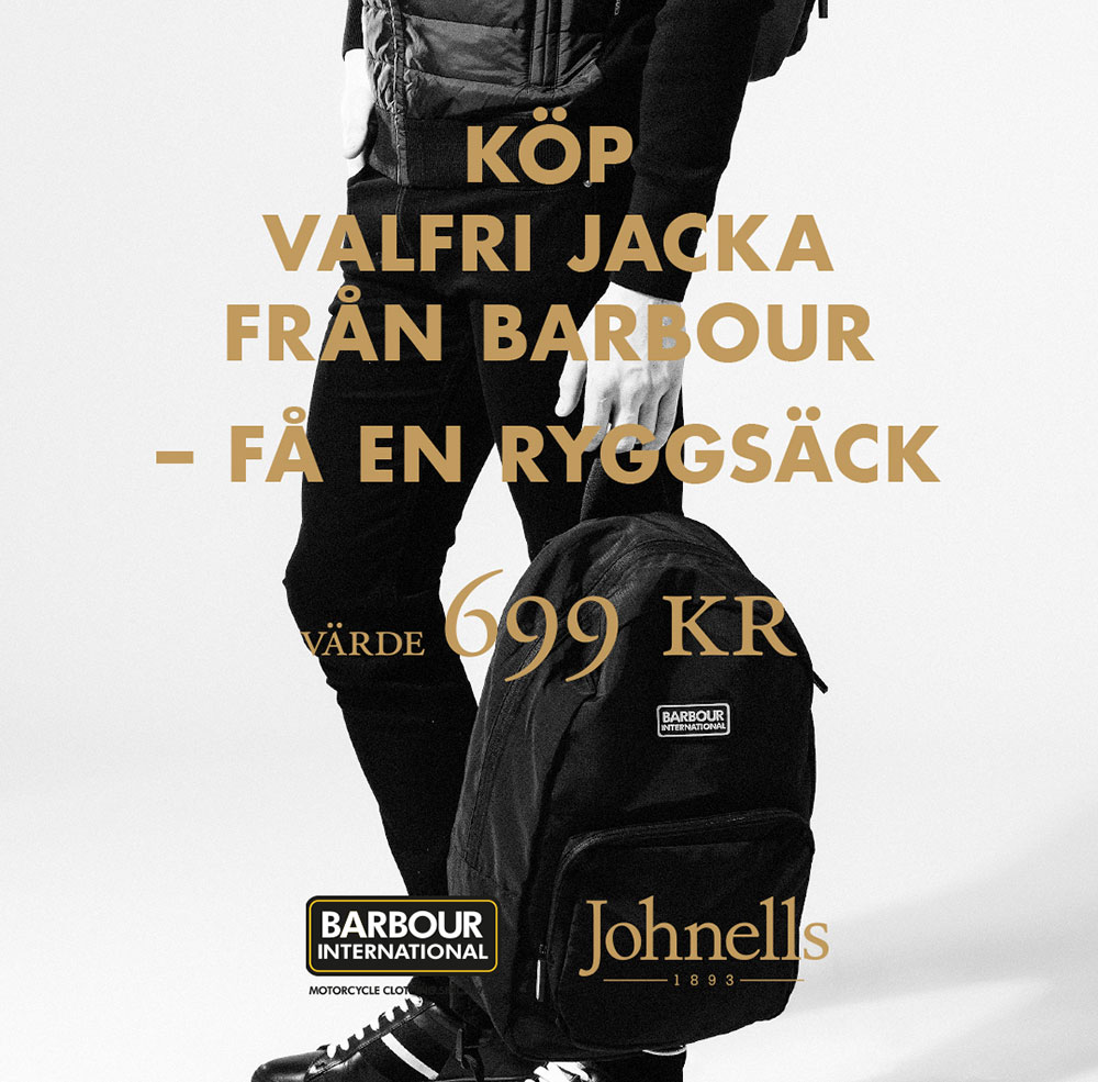 Vi har all bärhjälp du behöver hos oss på johnells.se och i våra butiker. Mellan 21/3 och 4/4, eller så långt lagret räcker, får du dessutom en ryggsäck från Barbour till ett värde av 699kr när du köper en Barbourjacka, så passa på!